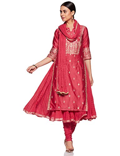BIBA WOMEN EMBROIDERY FITTED SALWAR KURTA DUPATTA(SKDPRET COL6180_CORAL_36)
