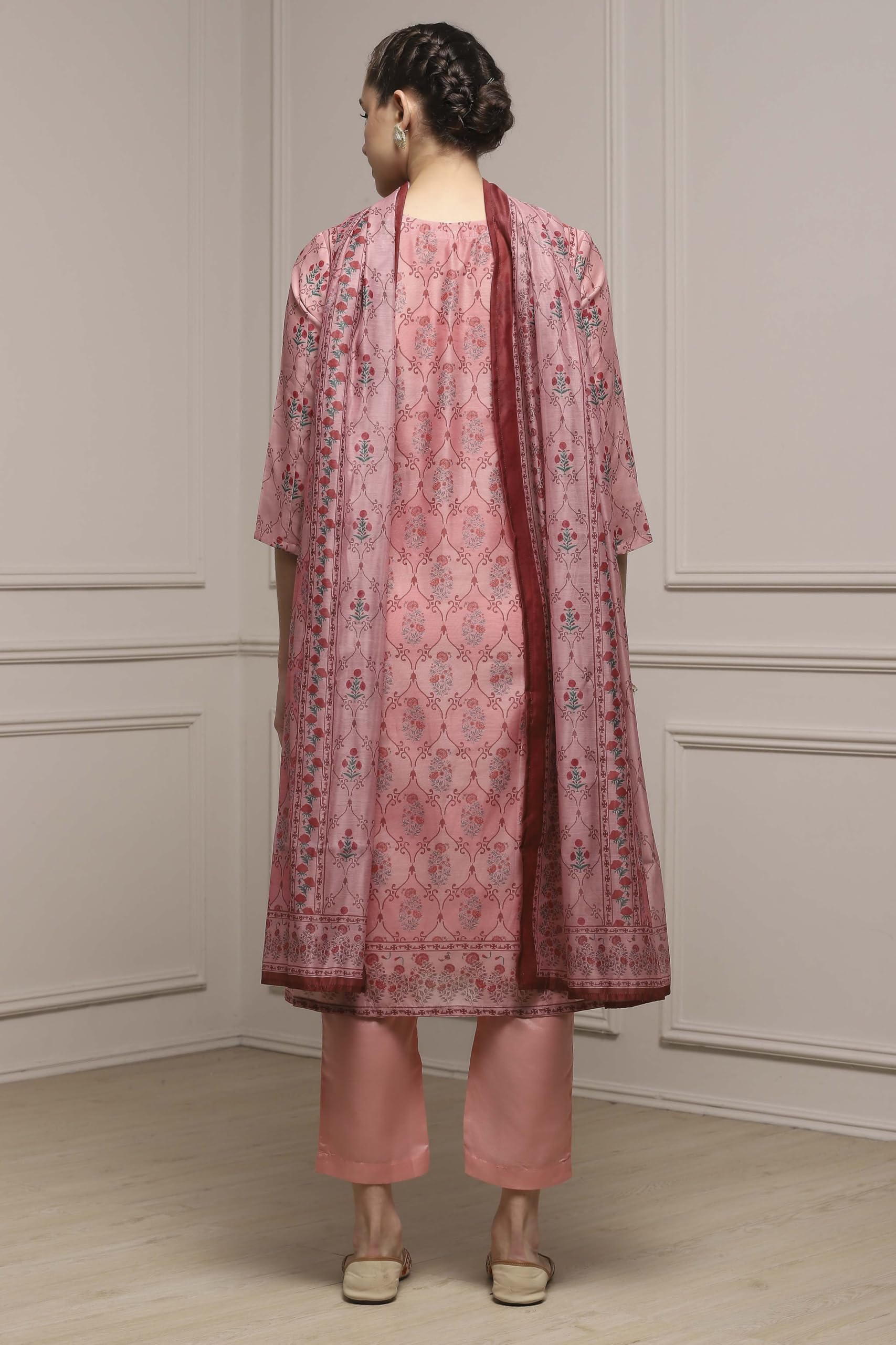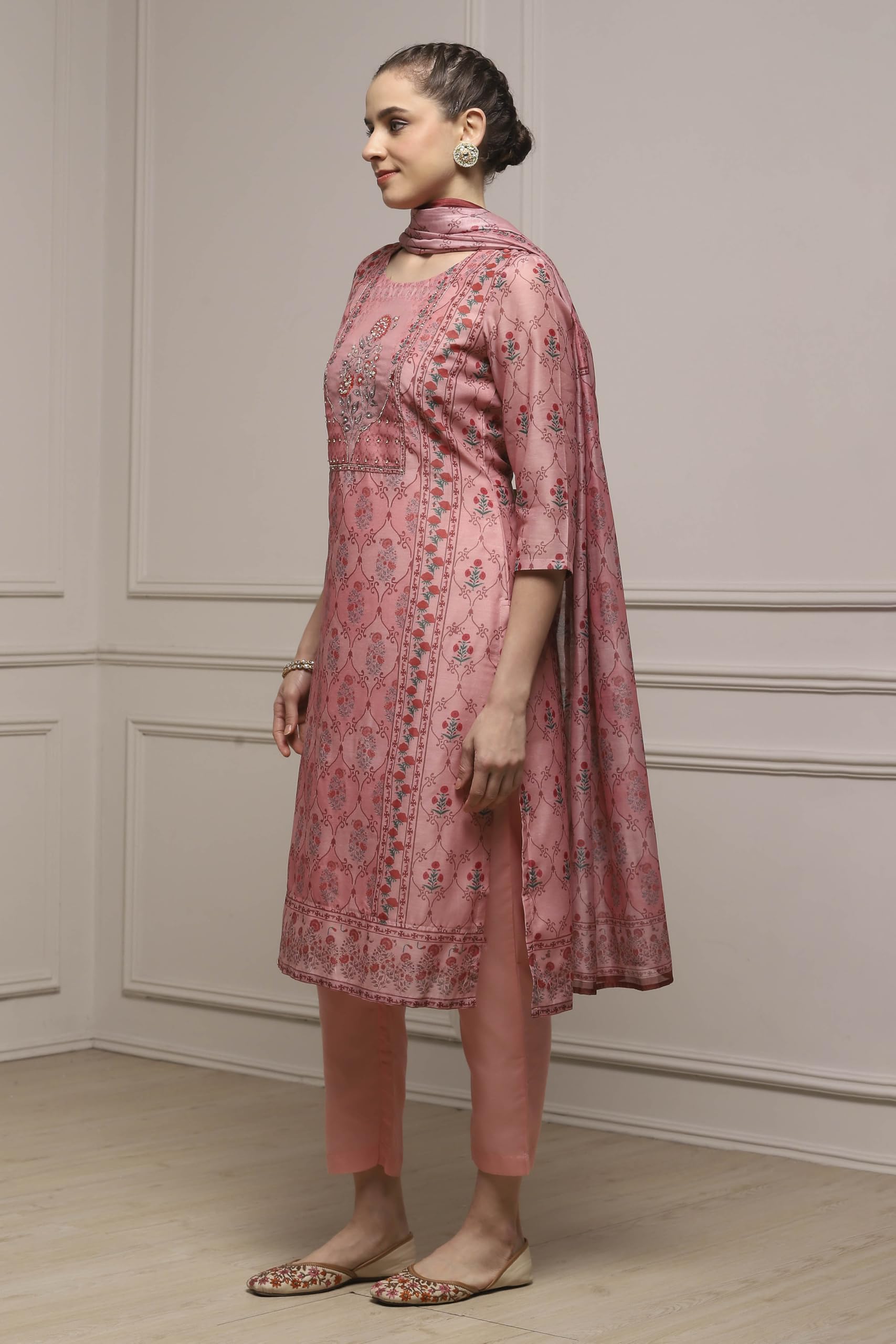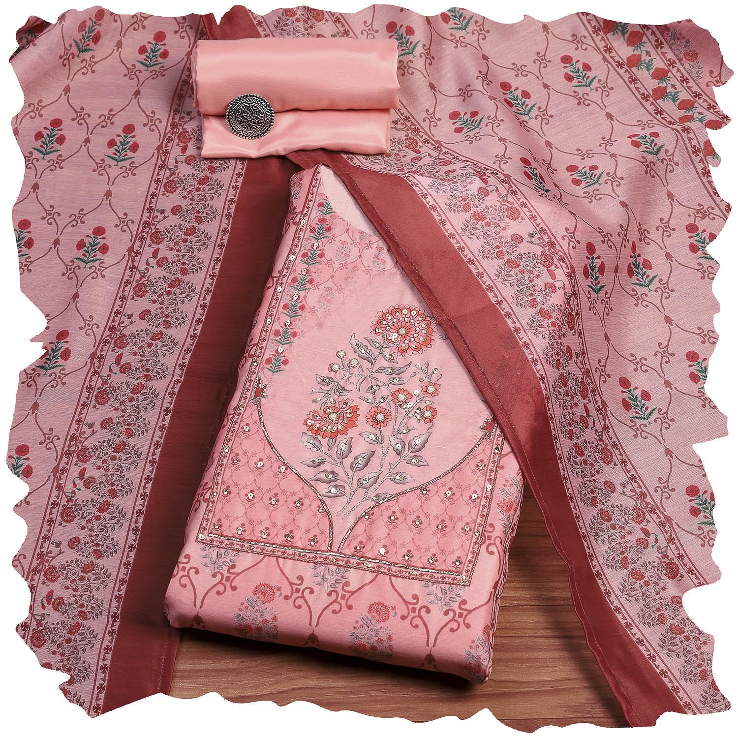 Biba Women Pink Chanderi Blend Printed Embroidered Unstitched Suit Set_FREE SIZE