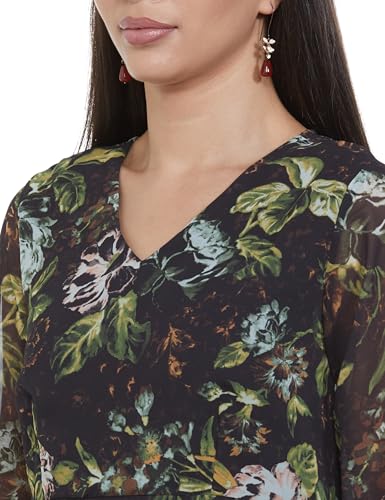 BIBA Women Polyester Flared Printed Dress Ankle Length ASSORTED1434EAW21BLK_Black