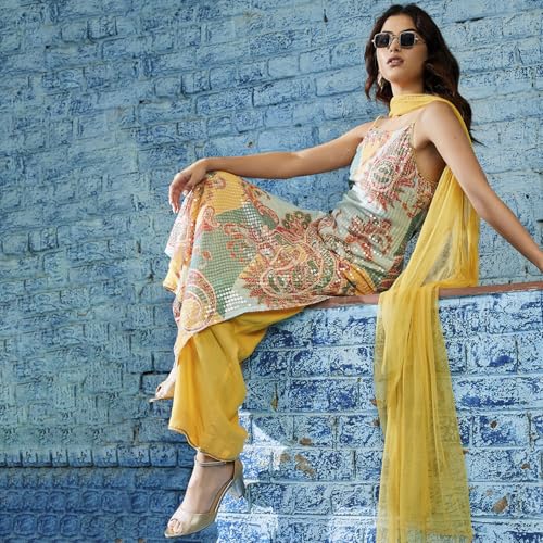 BIBA Women Polyester Printed Suit Set (SKDPAISLEYDIVA9671SS24YEL_Yellow