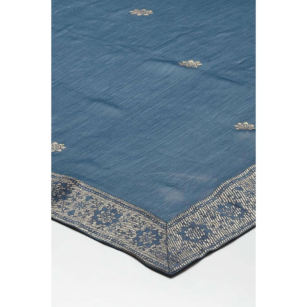 Biba Womens Teal Cotton Blend Flared Printed Kurta Suit Set