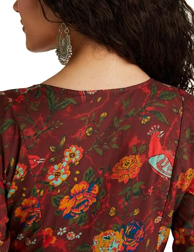 BIBA Women Printed Flared Mix and Match Ankle Length Fit and Flare Dress (Fusassorted1303E_Maroon_38)