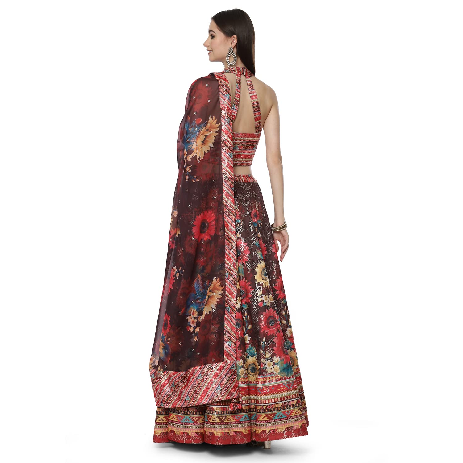 BIBA Women's Ethnic Choco Brown Polycotton Lehenga Set
