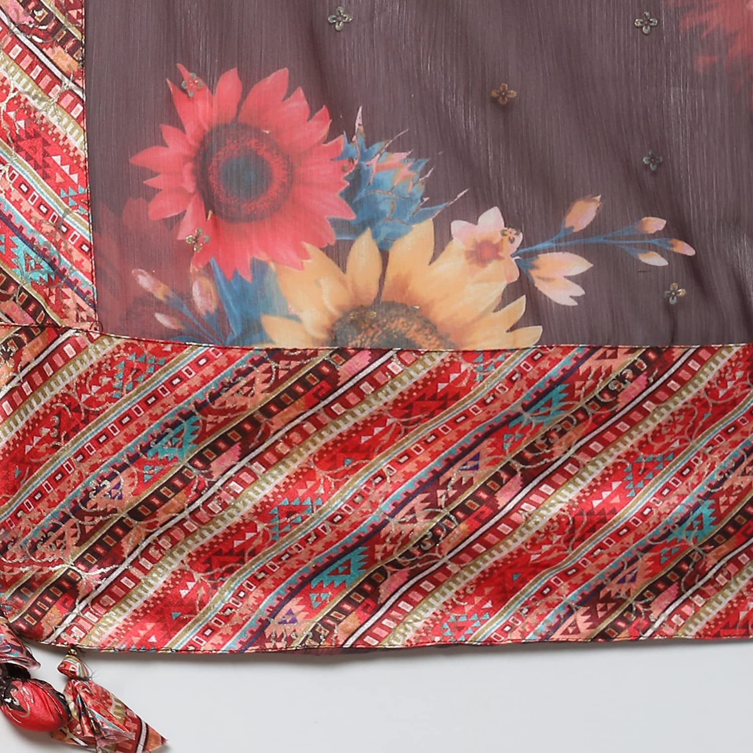 BIBA WOMEN PRINTED FLARED SALWAR KURTA DUPATTA(SKDASSORTED8199_CHOCO BROWN_38)