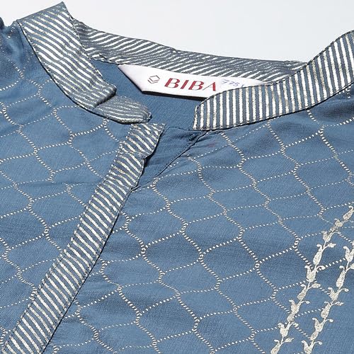 BIBA WOMEN PRINTED SALWAR KURTA DUPATTA(SKD7751E_SKY BLUE_34)