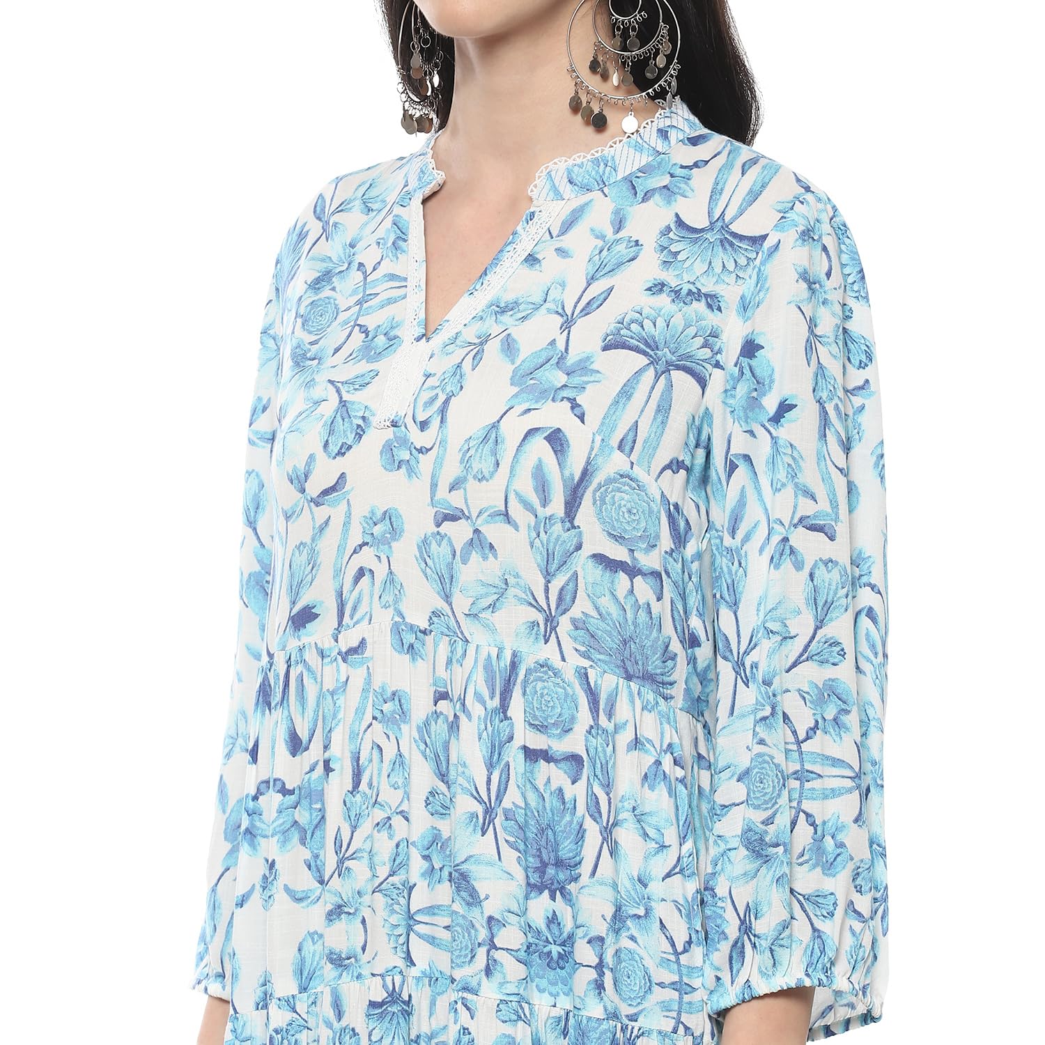 BIBA Women Printed Tired One Piece Dress, Ankle Length Dress Mix and Match(Summer Staples Collection2378_White_34)