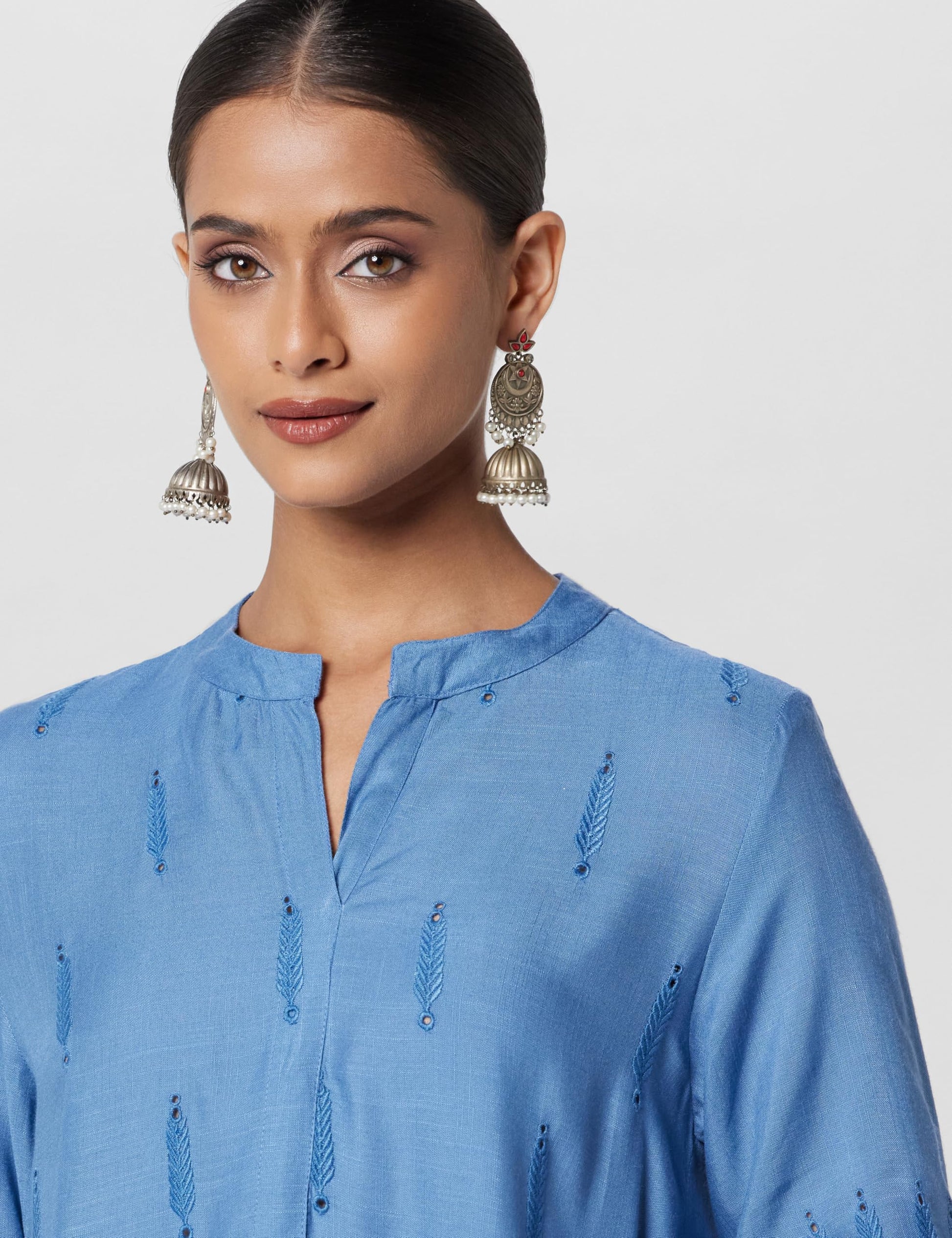 BIBA Women Rayon Solid Relaxed Mix And MatchCo-Ord Set (Work Vog1884_Blue_38)
