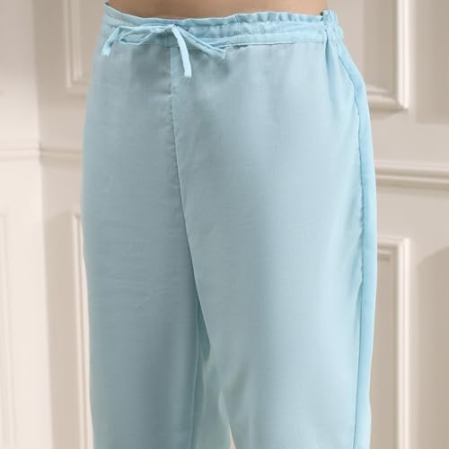 Biba Women Turquoise Chanderi Handloom Unstitched Suit Set FREE SIZE