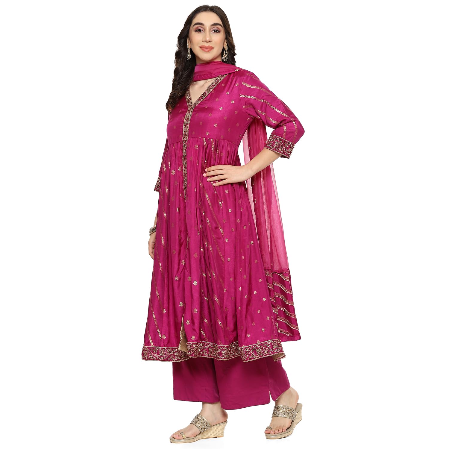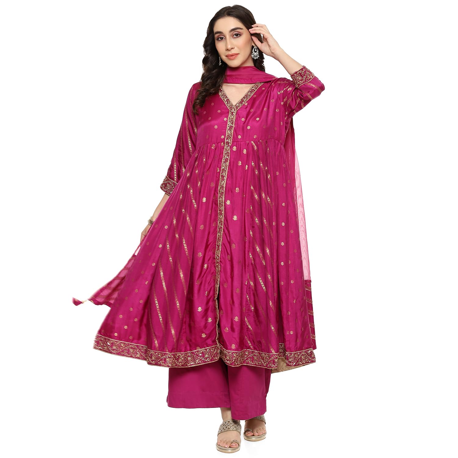 BIBA Women Viscose Anarkali Suit Set(SKDTHE GOLD8966_Magenta_L) (SKDTHEGOLD8966AW23MGT