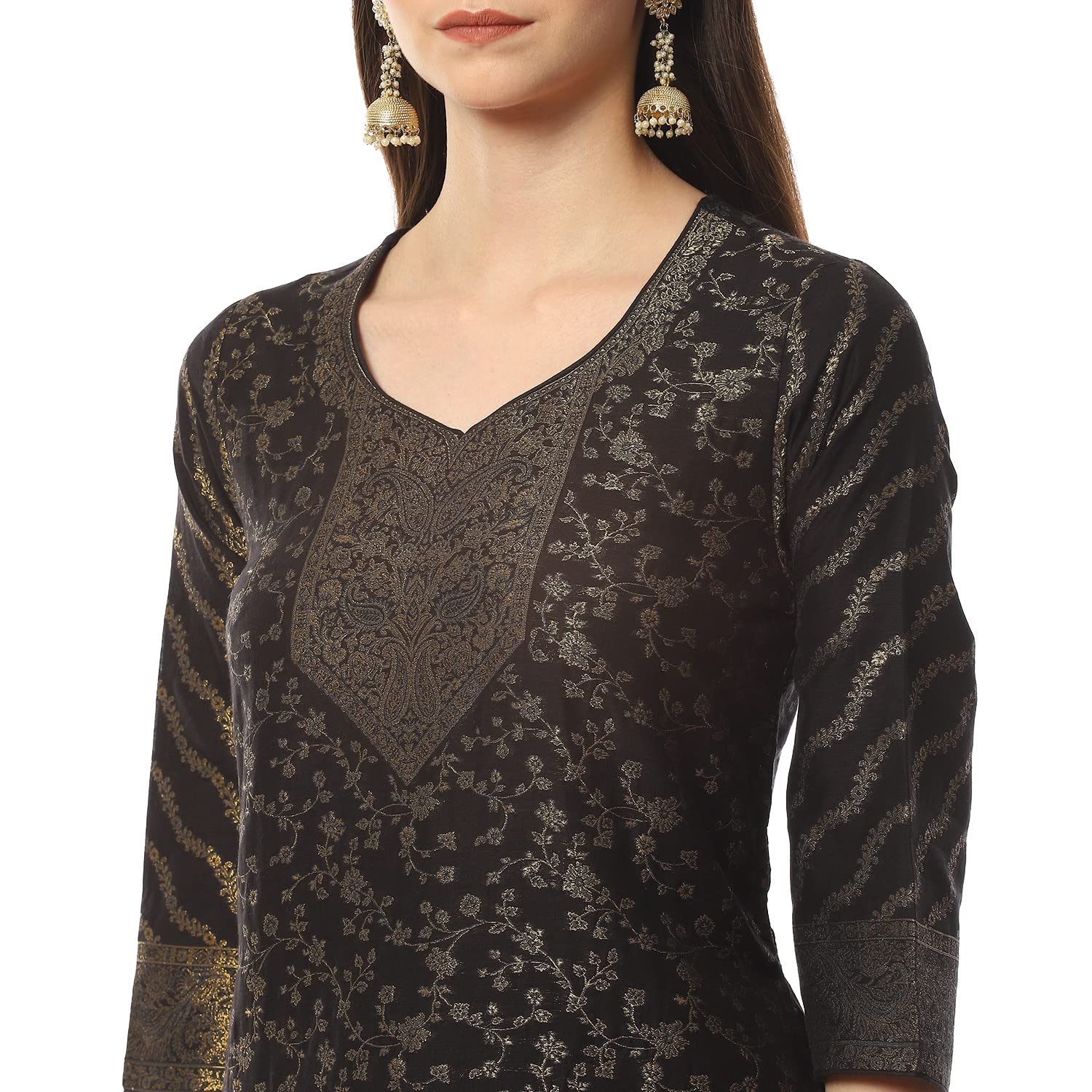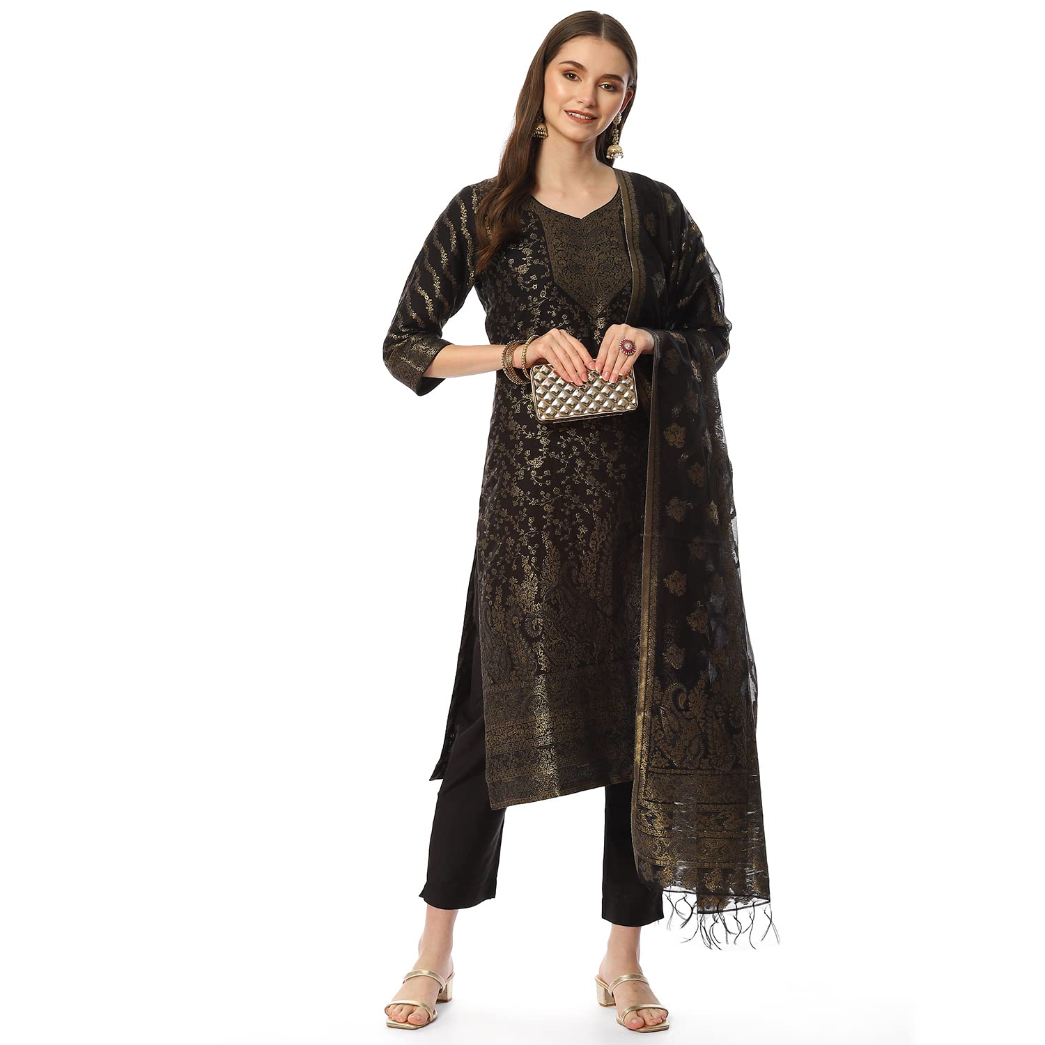 BIBA WOMEN YARNDYED NARROW SALWAR KURTA DUPATTA(SKDASSORTED8387_BLACK_38)