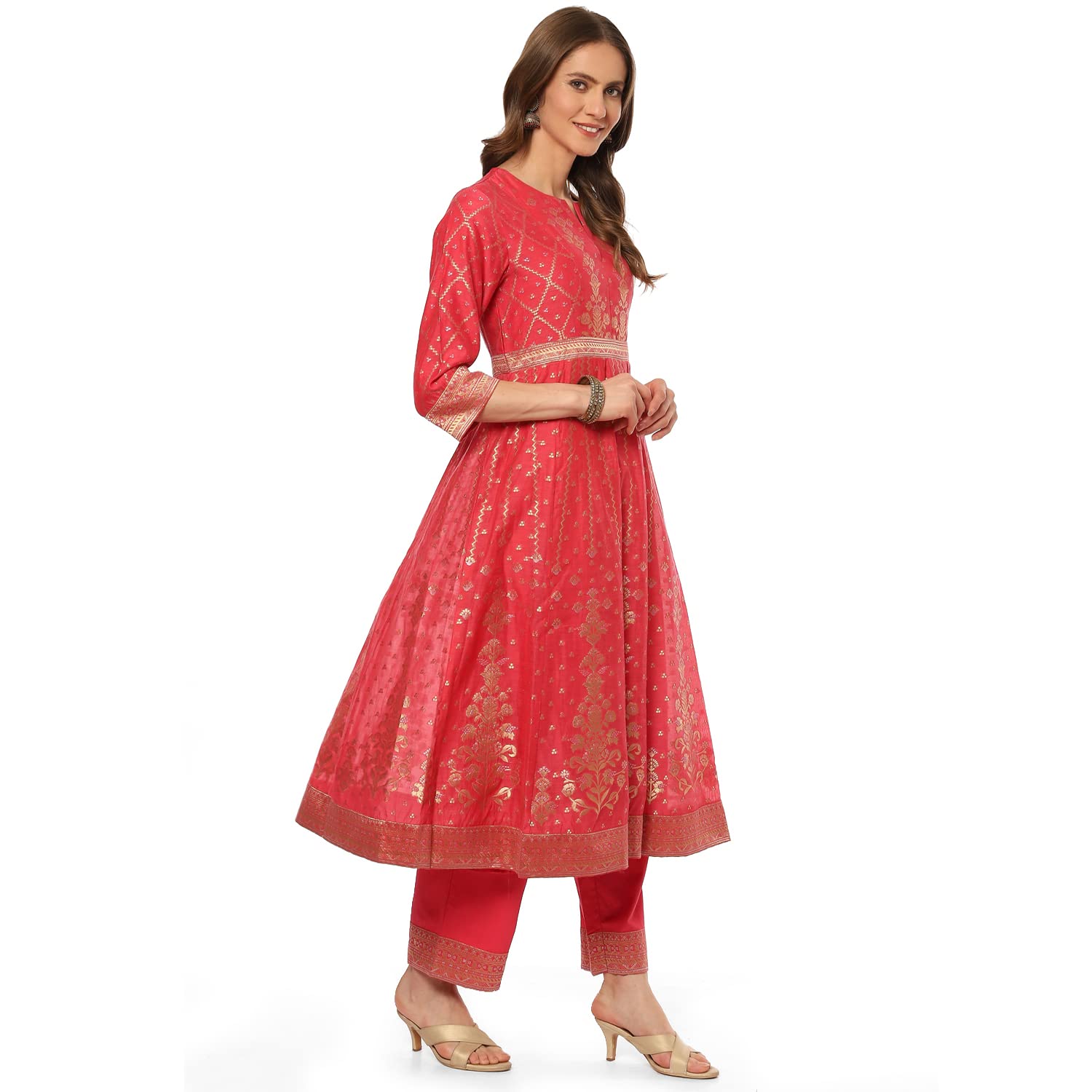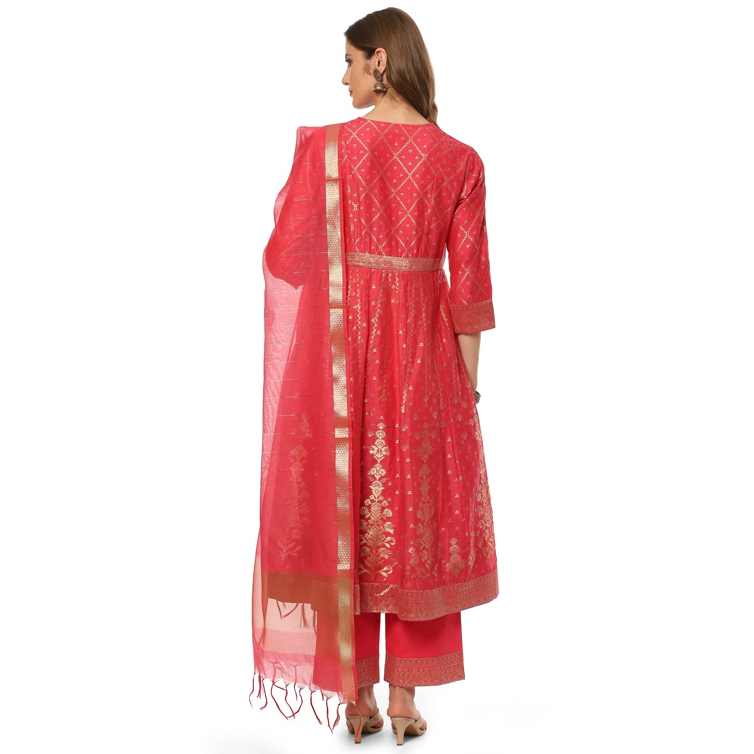 BIBA WOMEN YARNDYED NARROW SALWAR KURTA DUPATTA(SKDBANARAS8136_FUCHSIA_36)