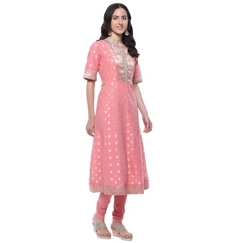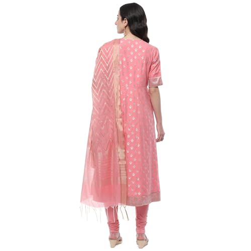 BIBA Women YARNDYED STRAIGHT KURTA SALWAR KURTA DUPATTA(SKDTHE GOLD WEAVE9620_BLUSH PNK_40)