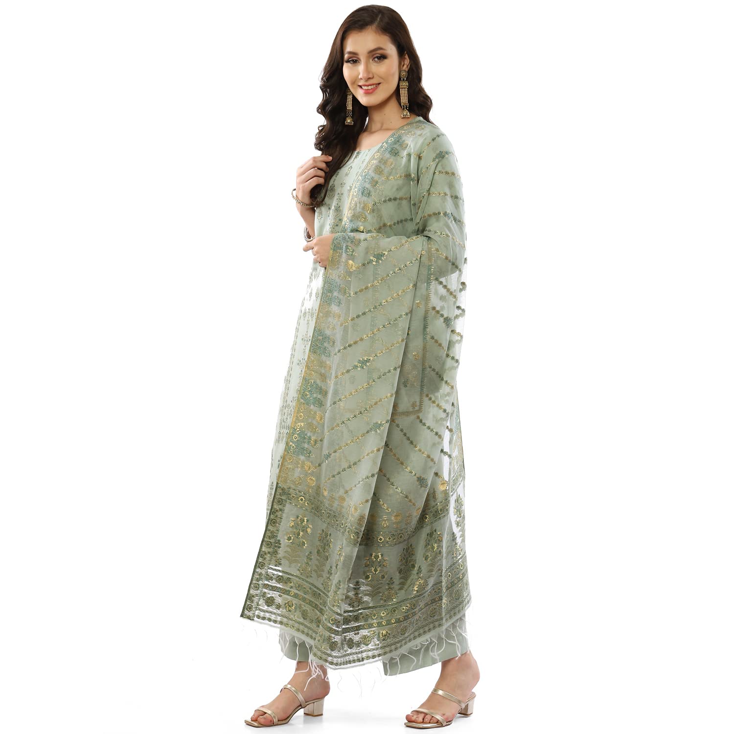 BIBA WOMEN YARNDYED STRAIGHT SALWAR KURTA DUPATTA(SKDASSORTED8385_MINT GREEN_38)