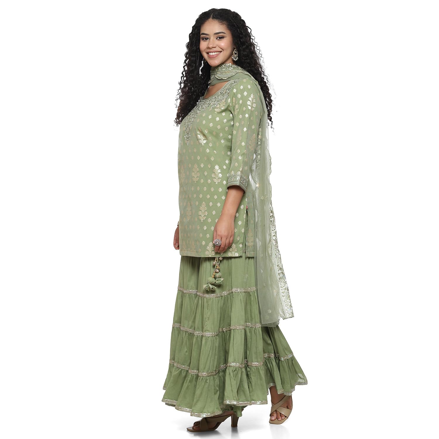 BIBA Women YARNDYED Straight SALWAR KURTA DUPATTA(SKDKINARI8924_SAP GREEN_38)