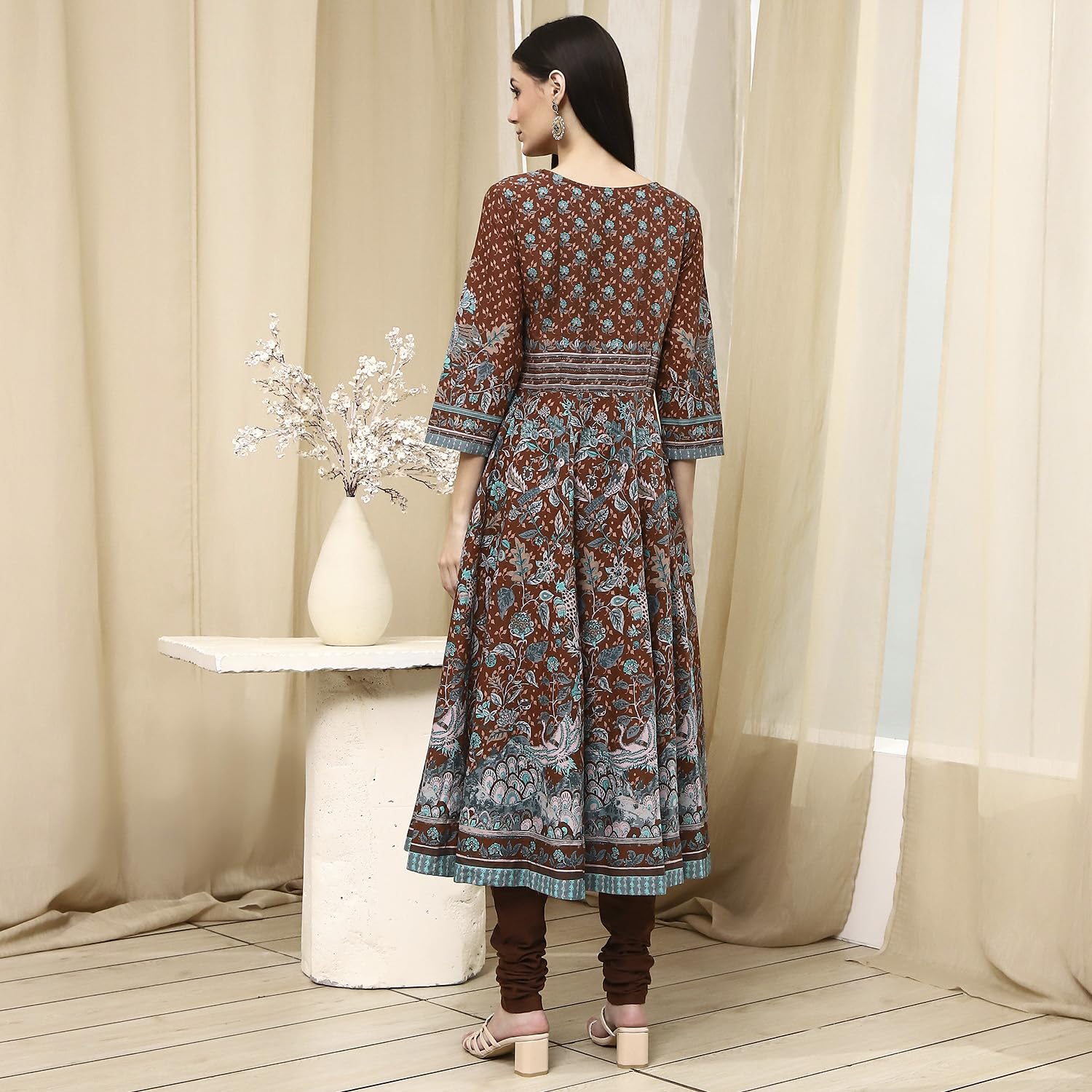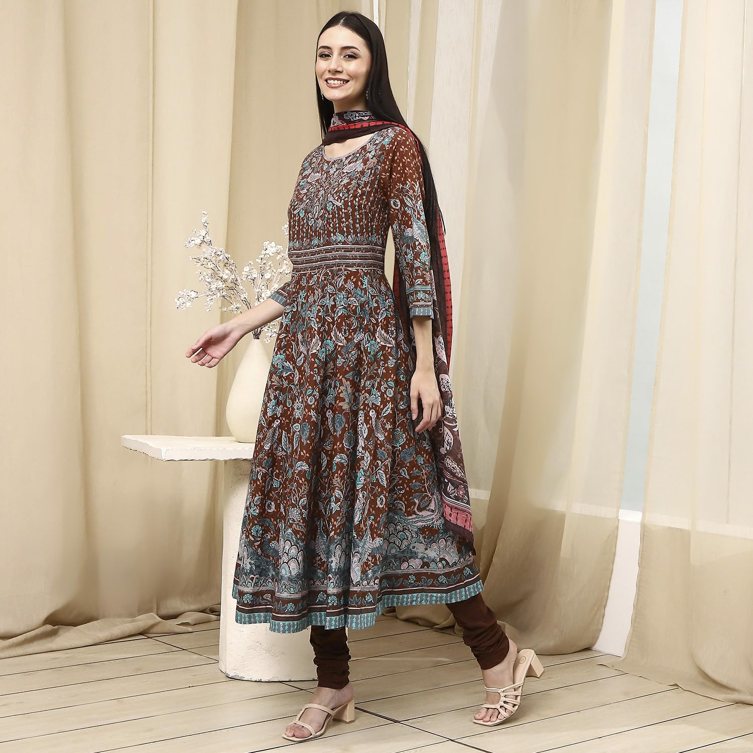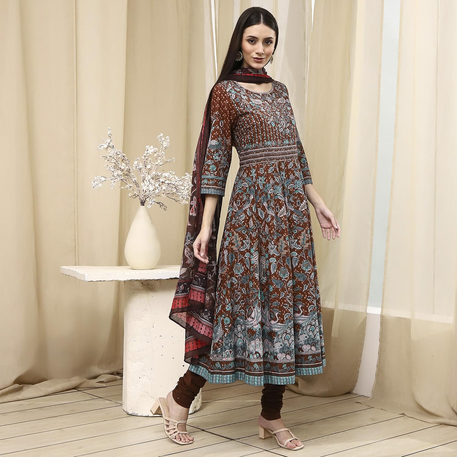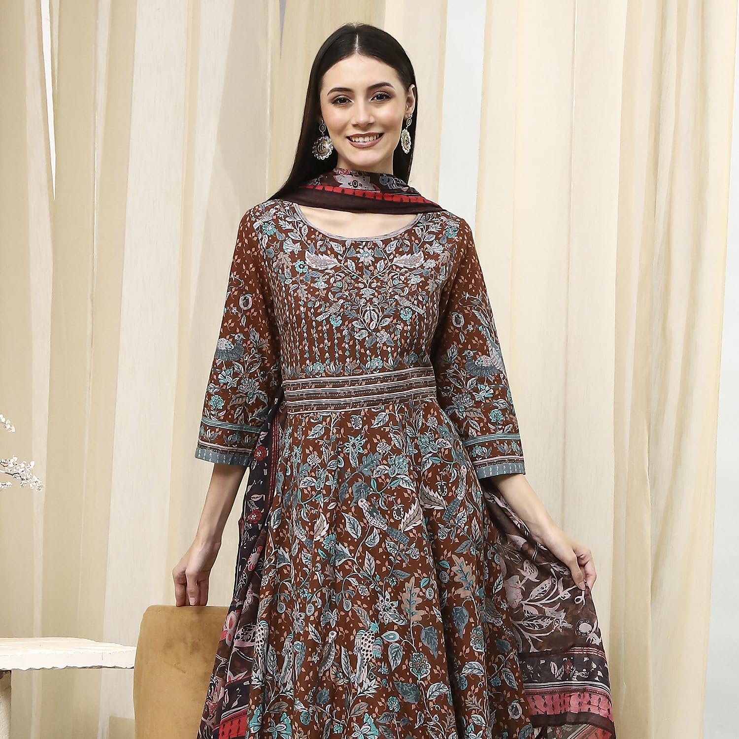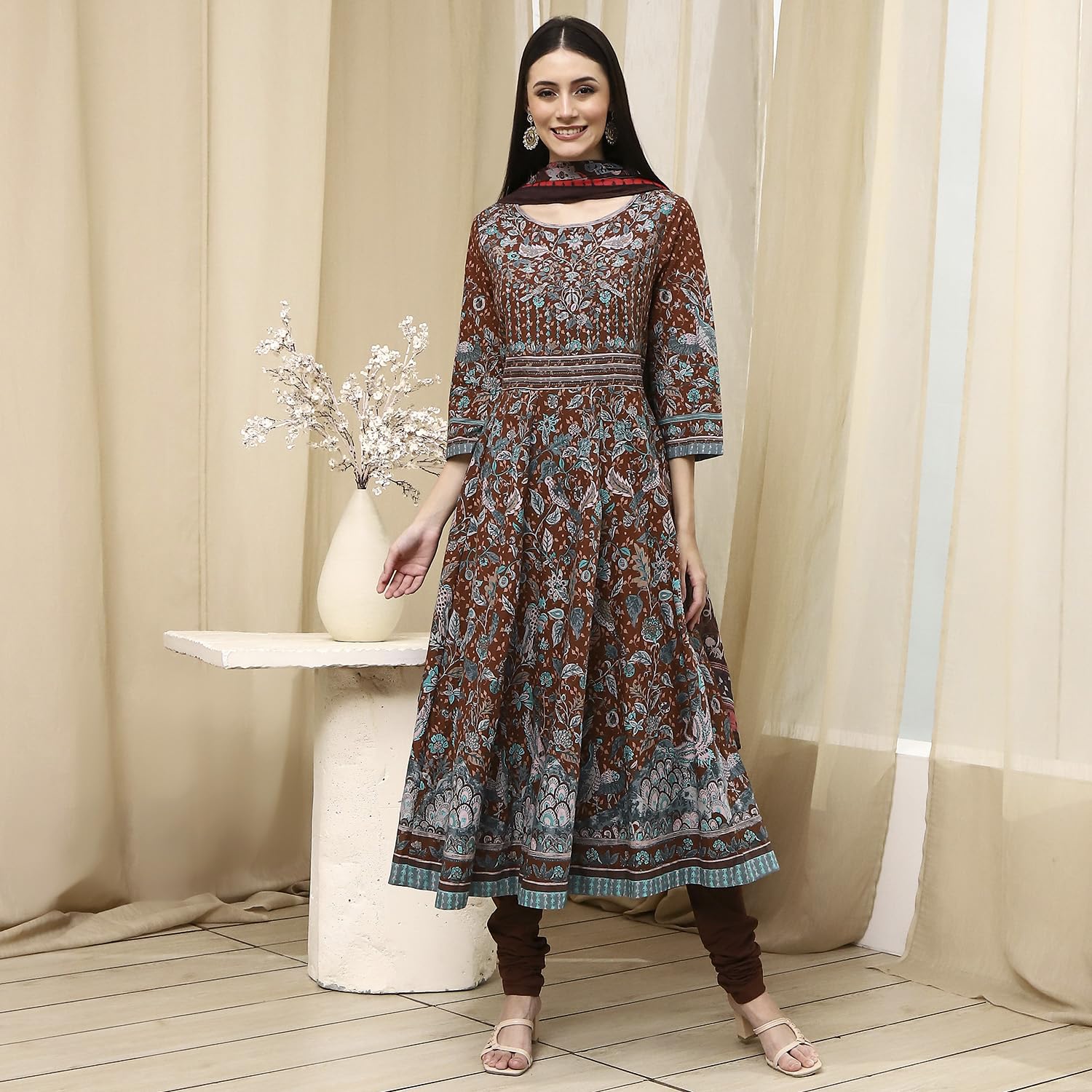 BIBA Women's 60'S Cambric Kurta Set (SKDKLMR8356ESS25BRN_Brown