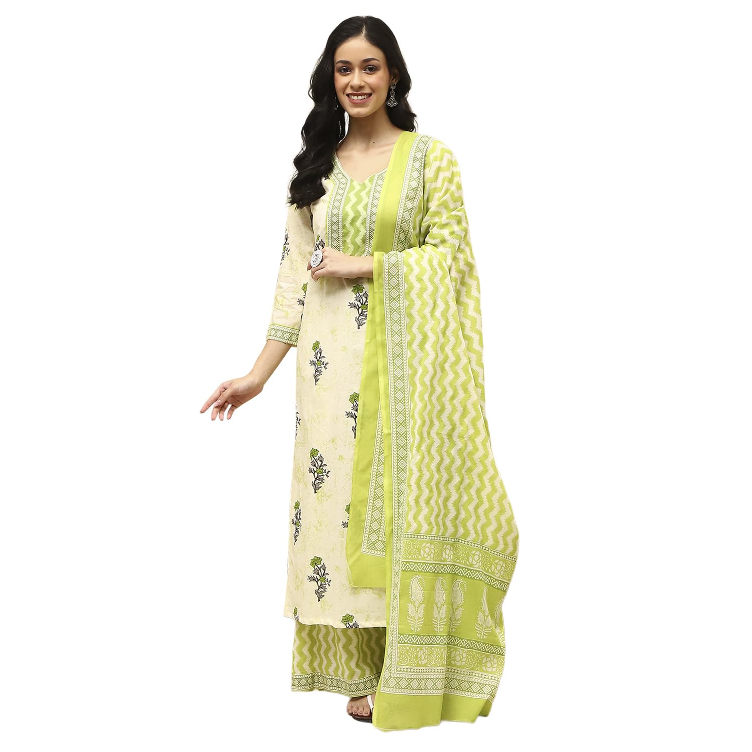BIBA Women's Assorted Cotton Hand Block Print Unstitched Suit Set