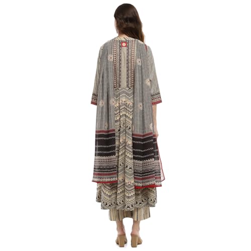 BIBA Women's Beige Cotton Anarkali Suit Set (SKD9727SS24BEG