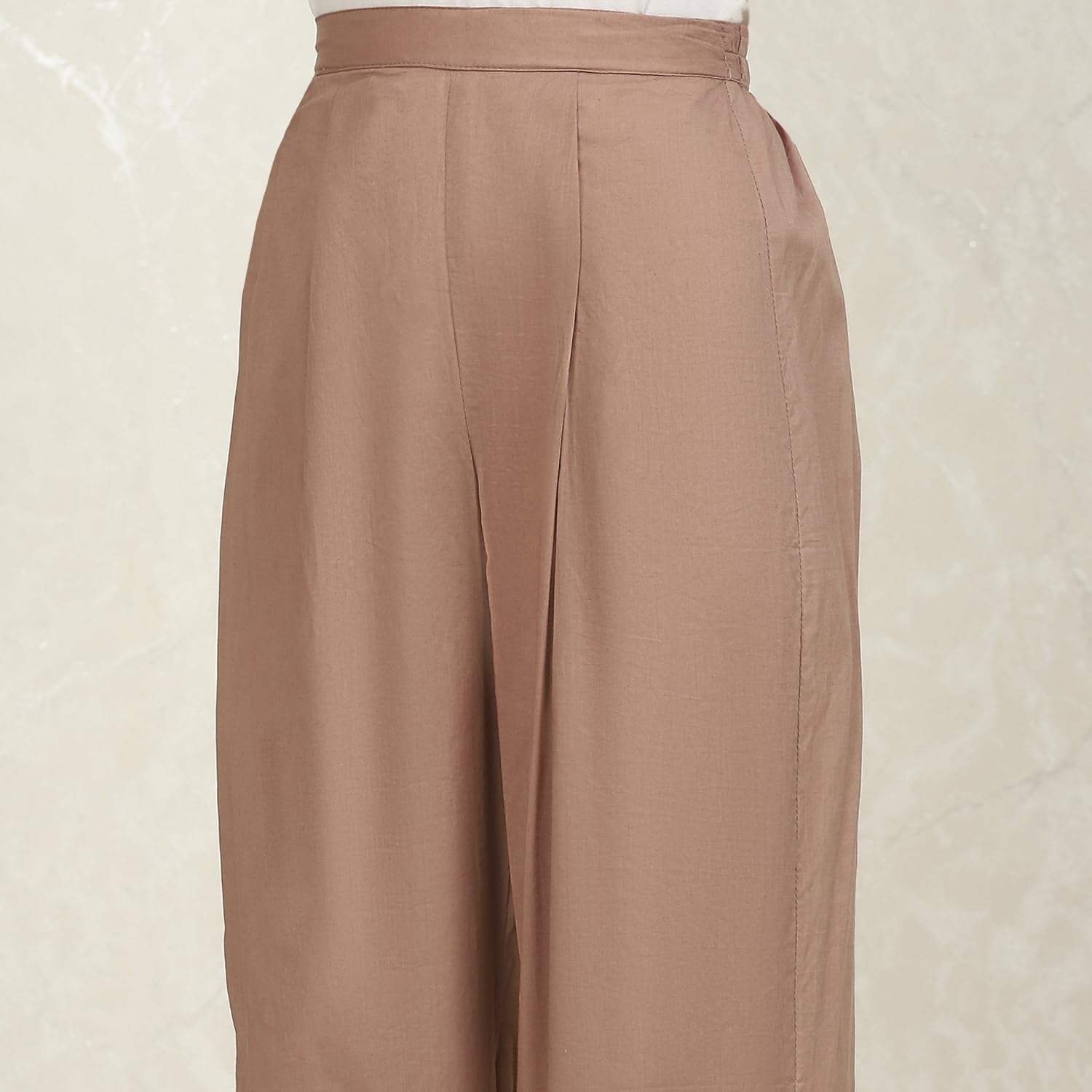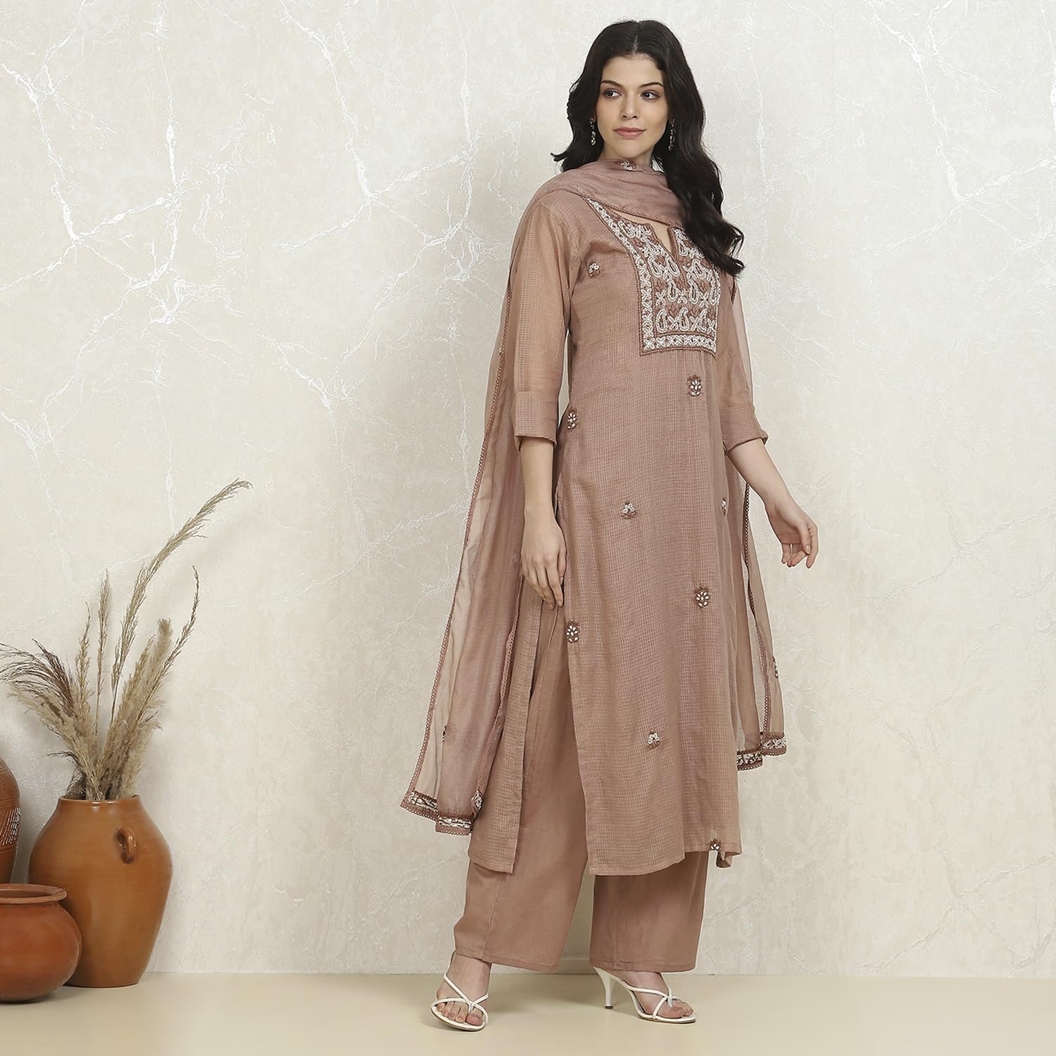 Biba Women's Brown Cotton Hand Embroidered Unstitched Suit Set