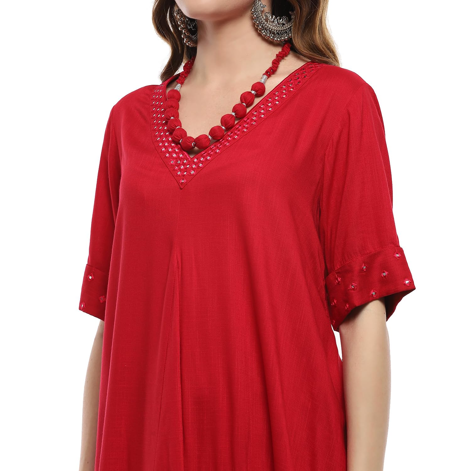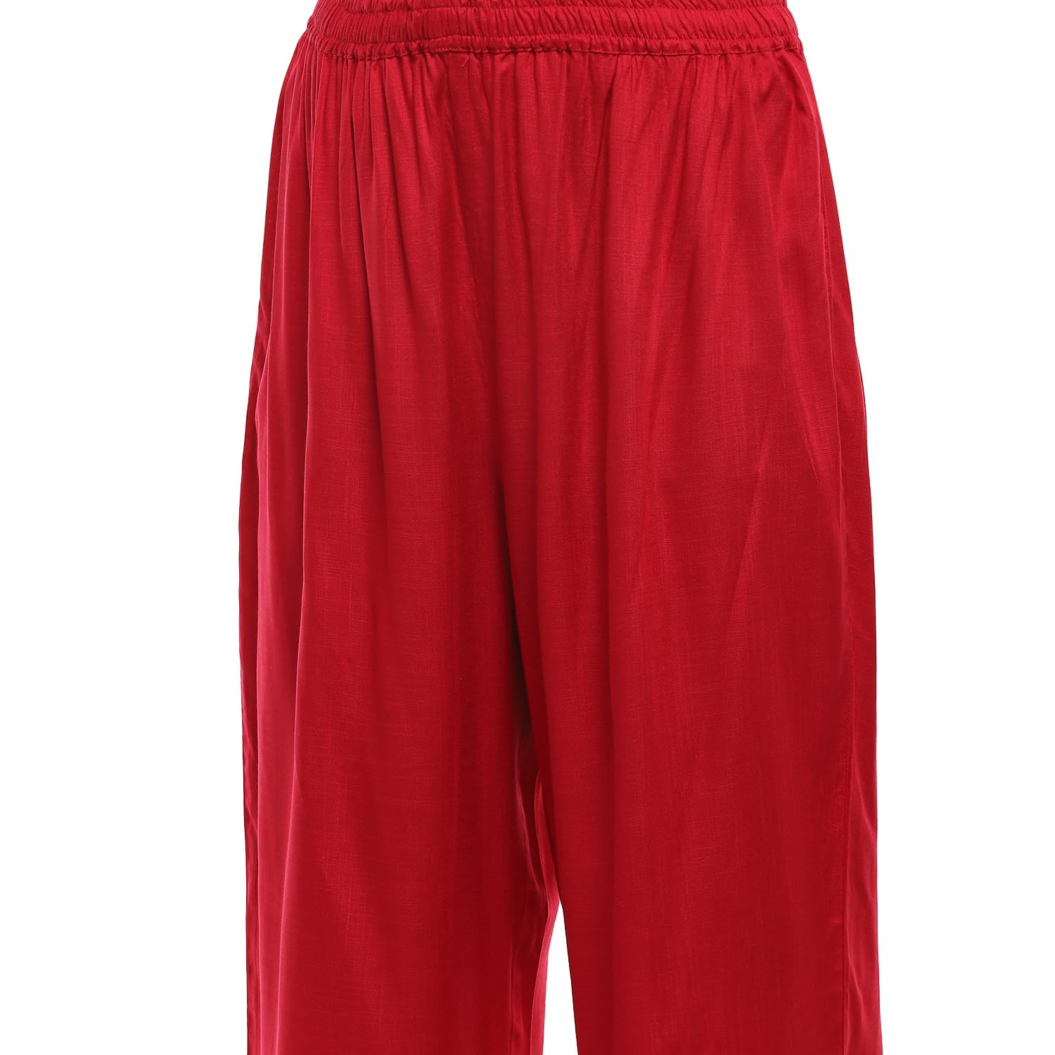 BIBA Women's Burgundy Rayon Asymmetric Suit Set