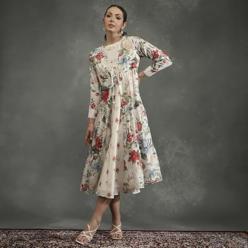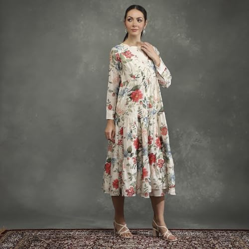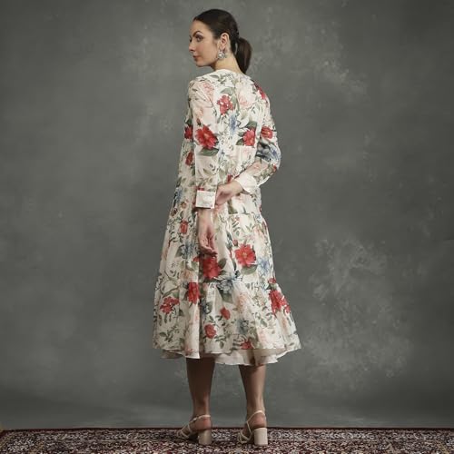 BIBA Women's Cotton Blend Mini Dress (CKD10954AW24IVRY_Ivory