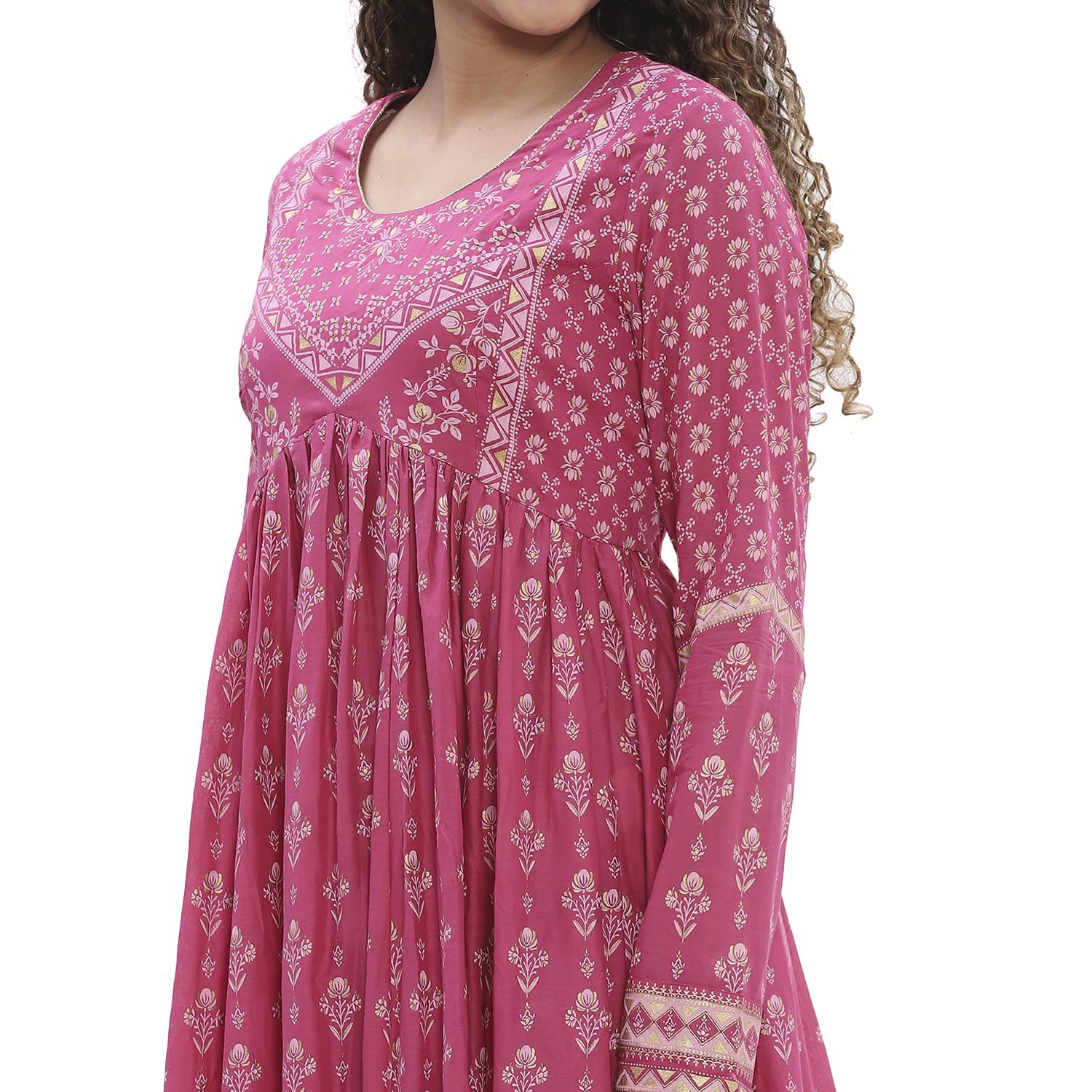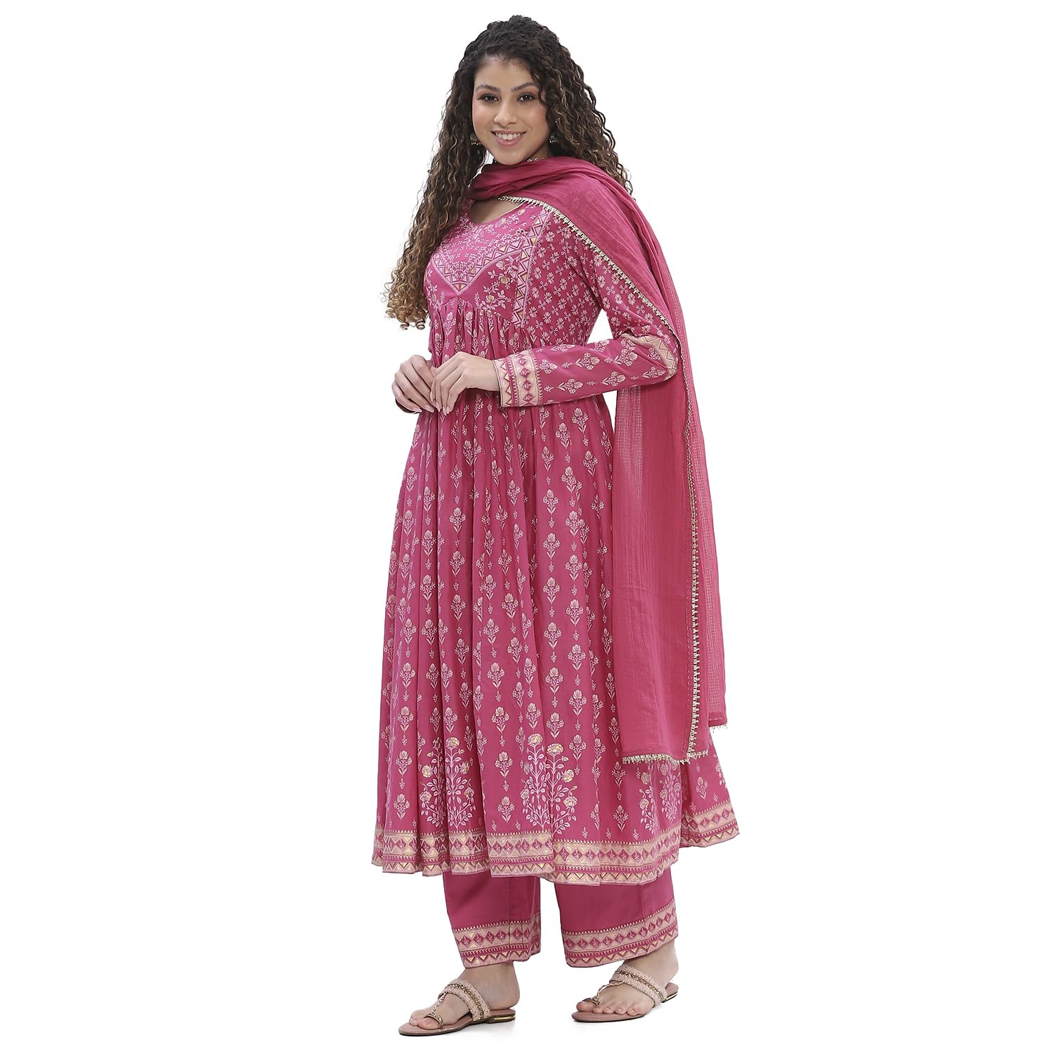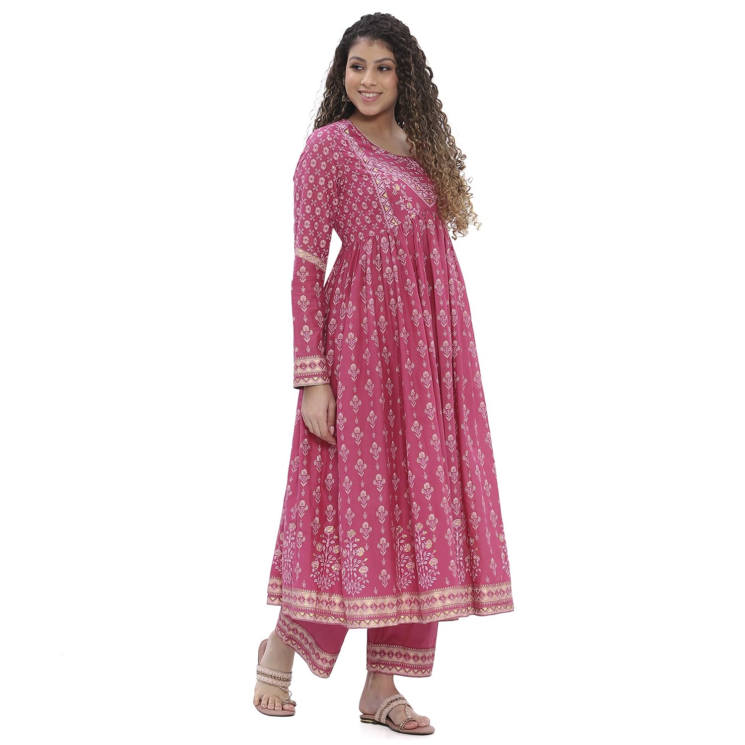 Biba Women Onion Pink Cotton Anarkali Suit Set