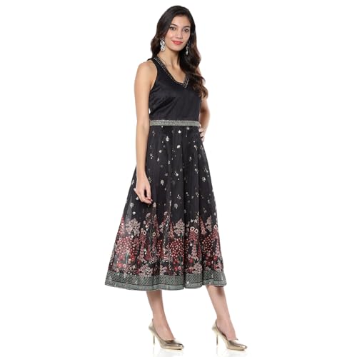 BIBA Women's Dupion Mini Dress (FEST2739AW24BLK_Black