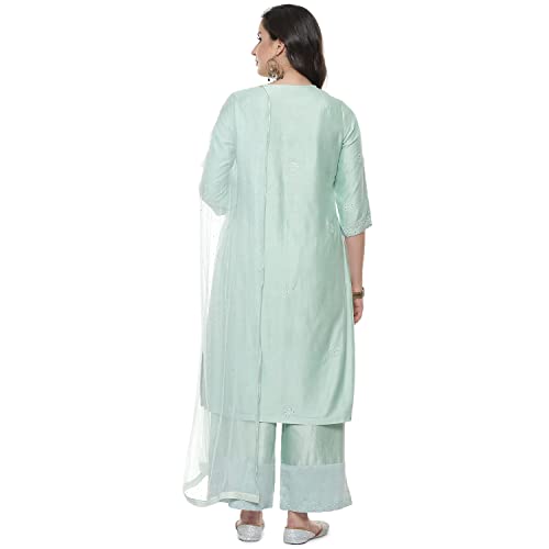 BIBA Women's Ethnic Green Cotton Kurta Suit Set (Size_S)
