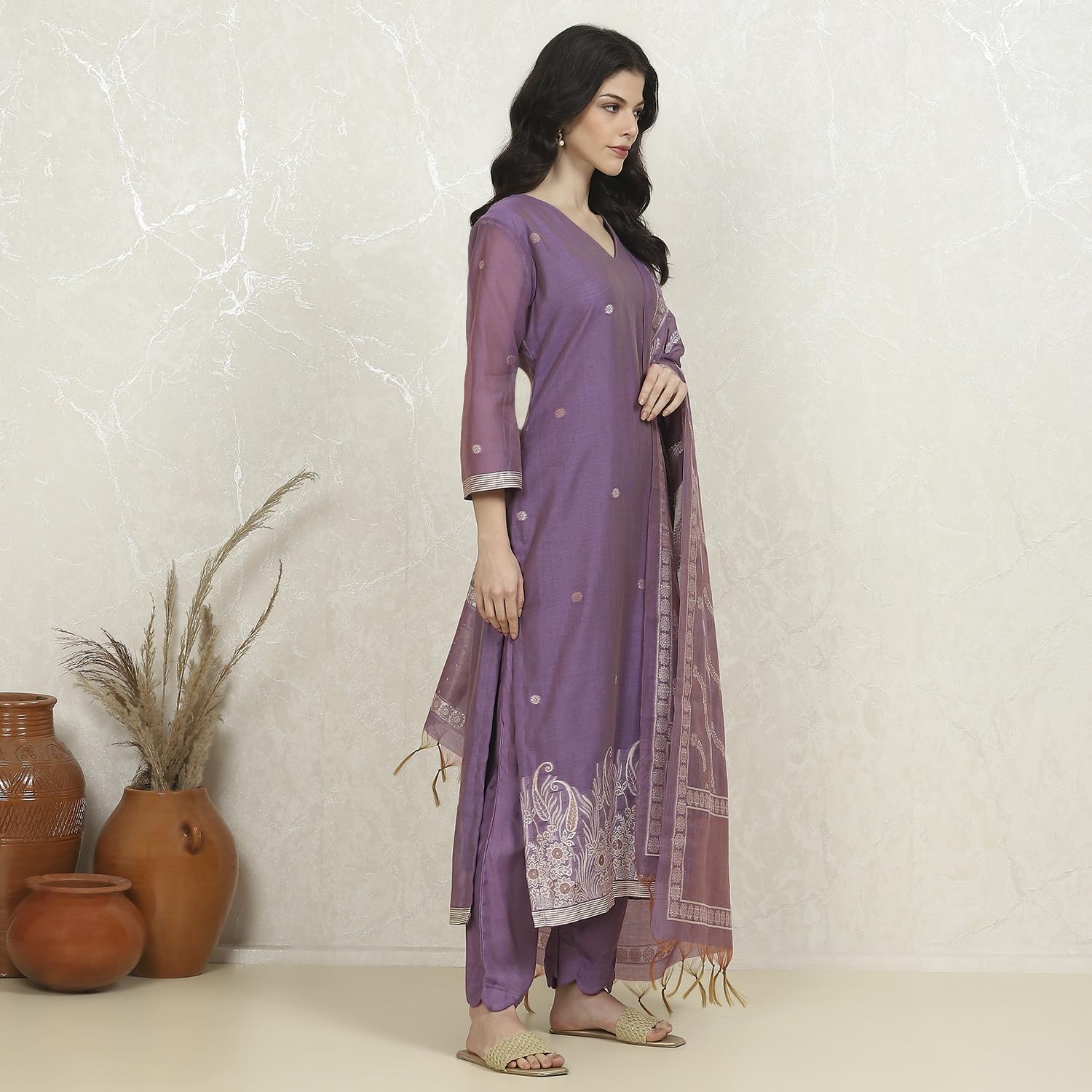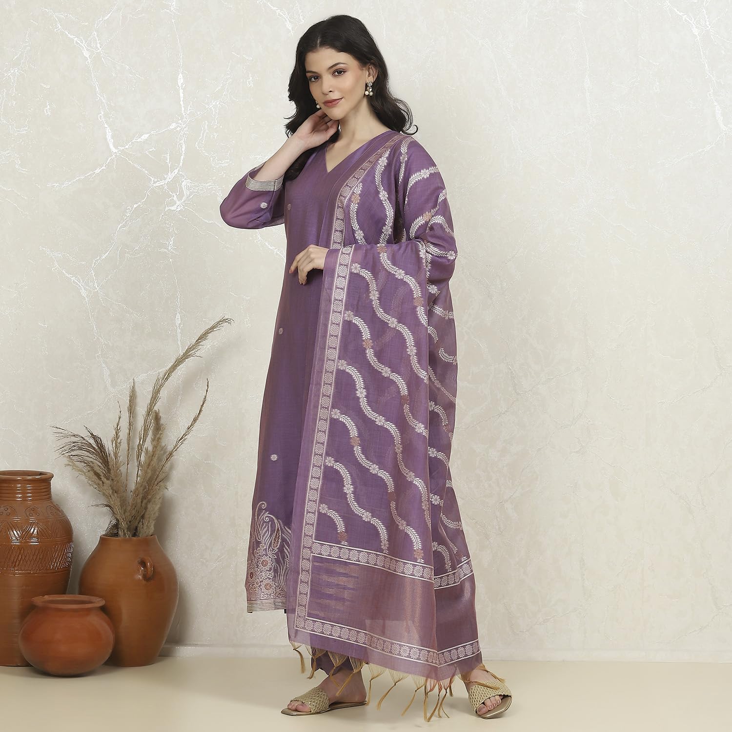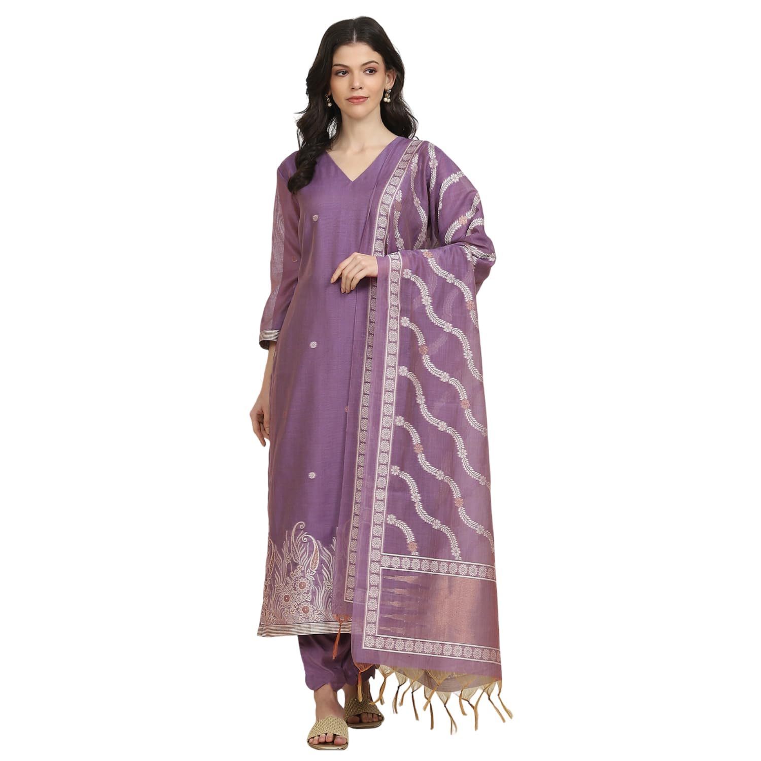 Biba Women's Lavender Chanderi Weave Unstitched Suit Set