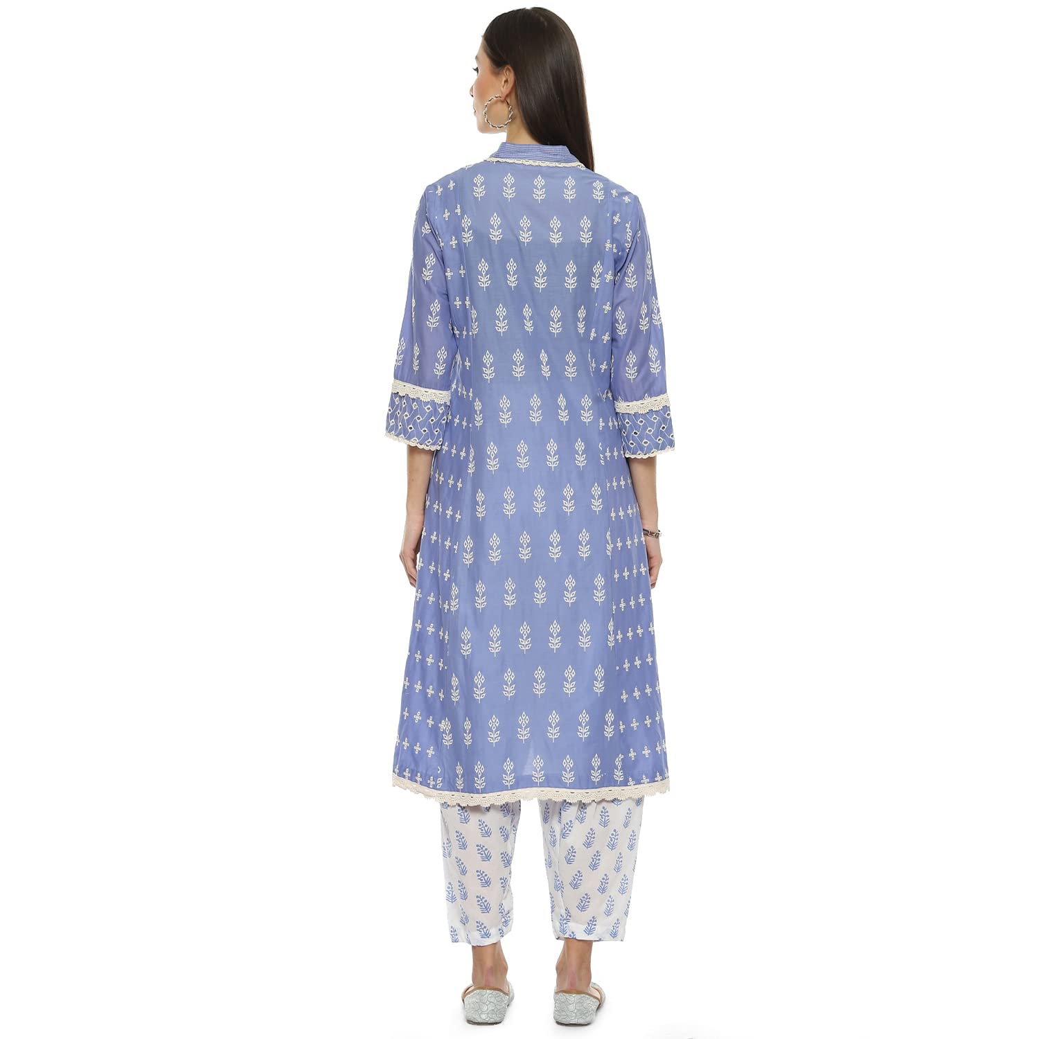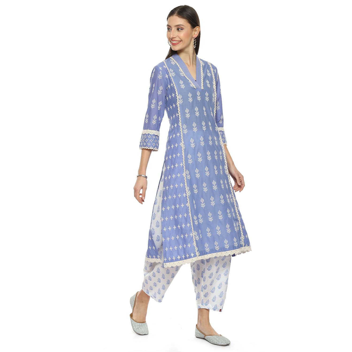 BIBA Women's Lilac Cotton Straight Embroidred Kurta