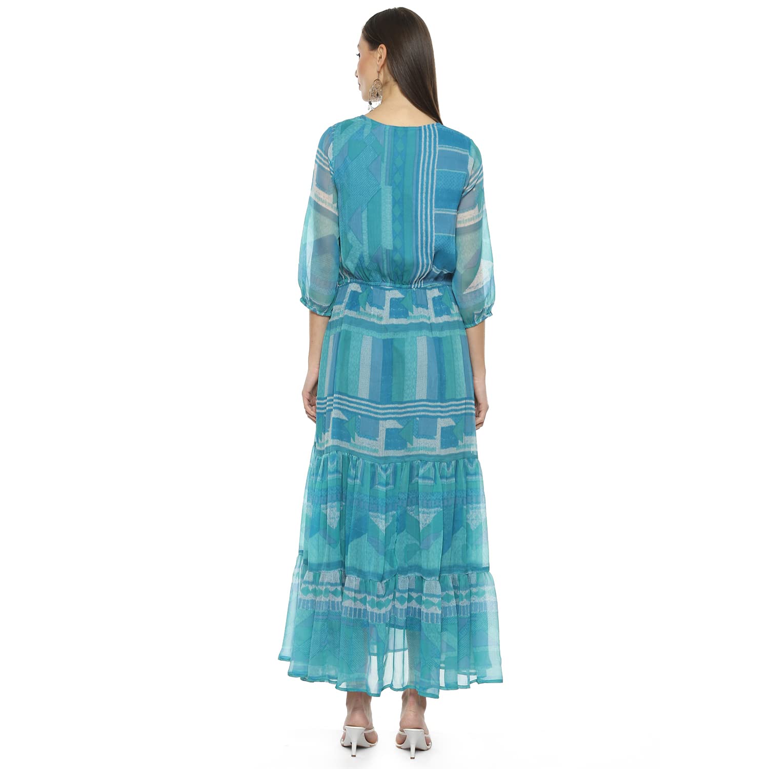 Details: BIBA Women's Blue Poly Chiffon Tired Dress Dress
