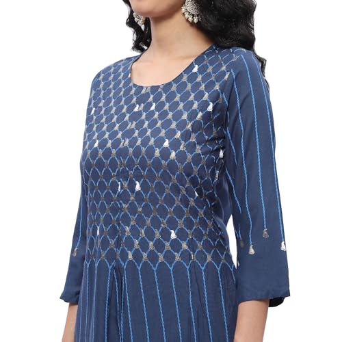 BIBA Women's Polycotton Kurta Suit Set (SKD7437ESS23BLU_Blue_XL)