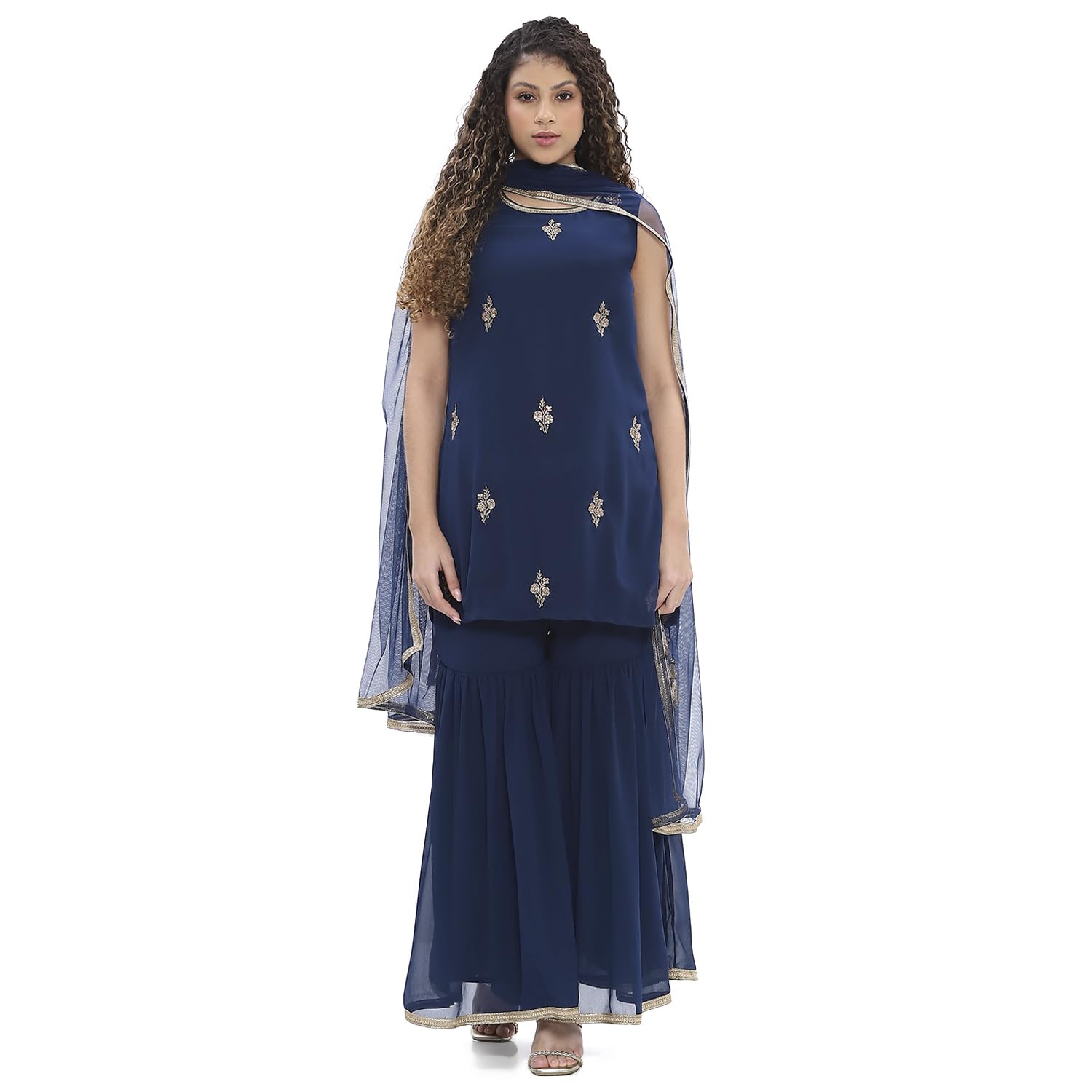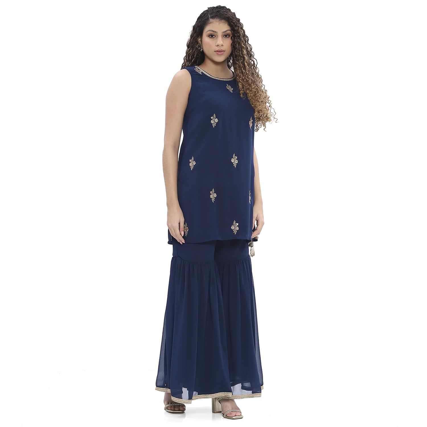 Biba Women's Polyester Kurta Set (SKDNAGMA10829SS25BLU_Blue