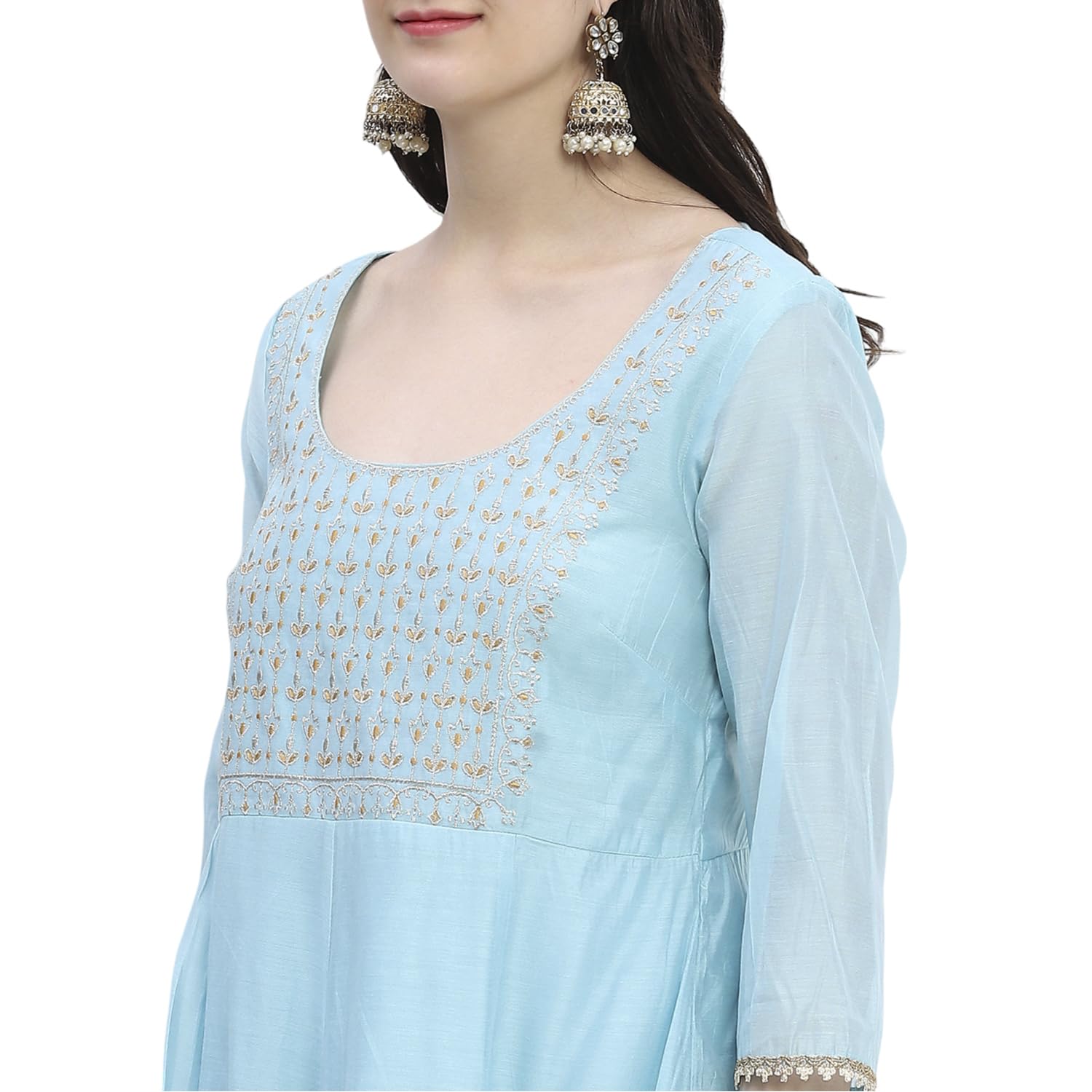 BIBA Women's Polyester Kurta Sets (SKD8799OAW24POBLU_Blue