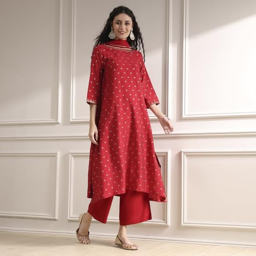 Biba Women's Polyseter Blend Kurta Set (SKDRSTELE30519AW25RED_Red