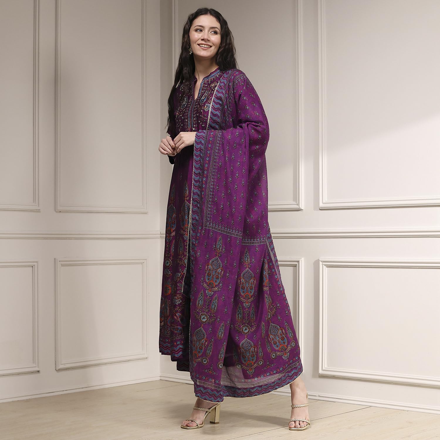 Biba Women's Rayon Kurta, Bottom, Dupatta (SKDRSTELE30316AW25PUR