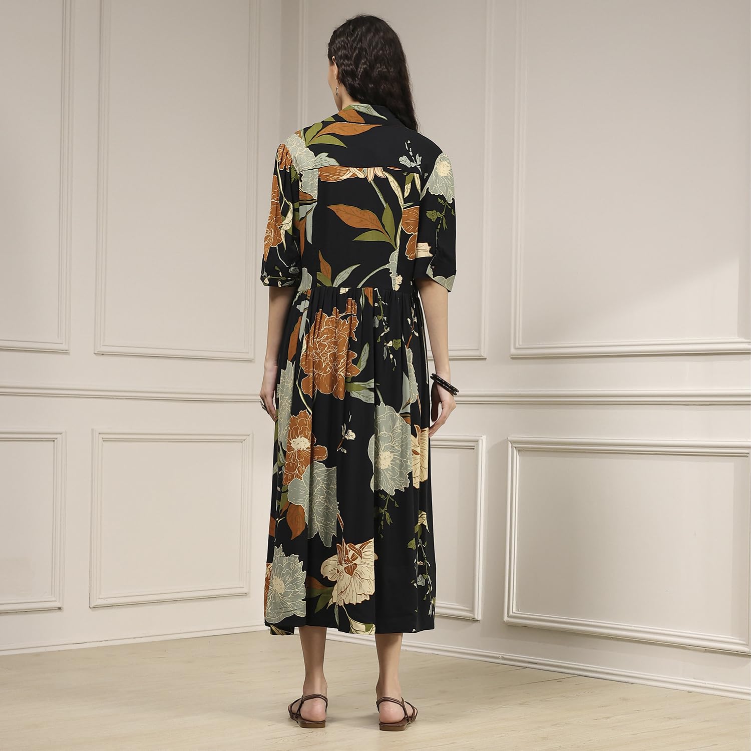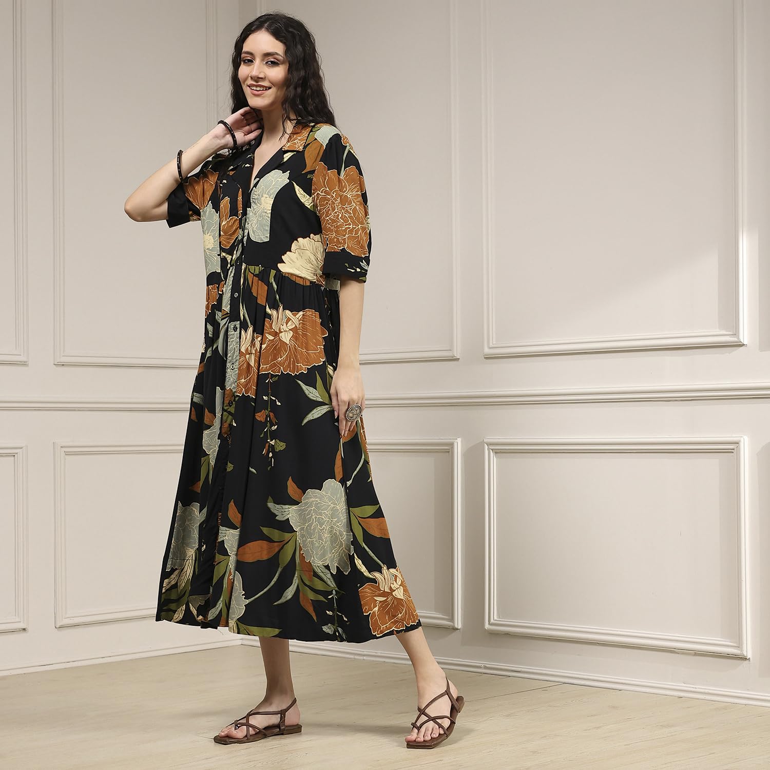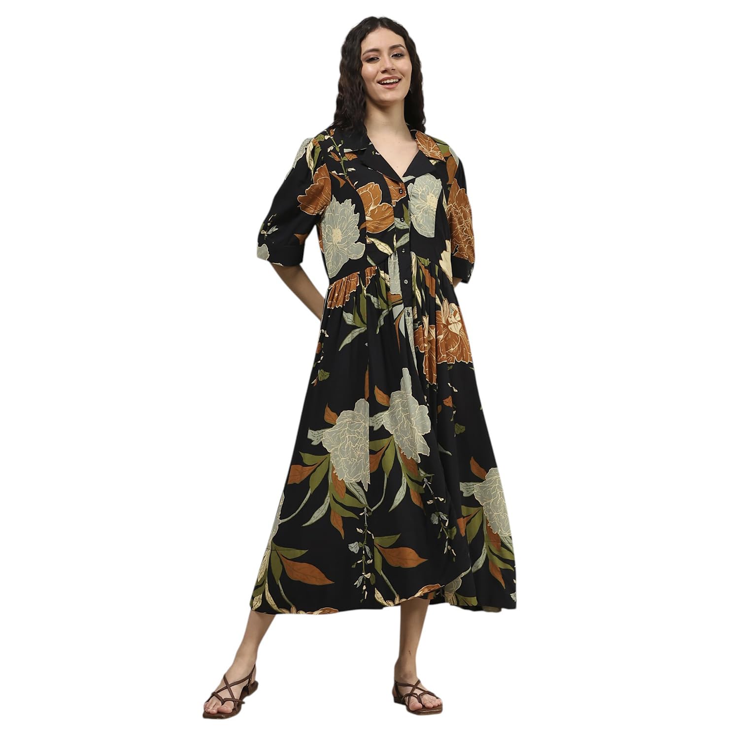 Biba Women Black Viscose Rayon Straight Printed Dress