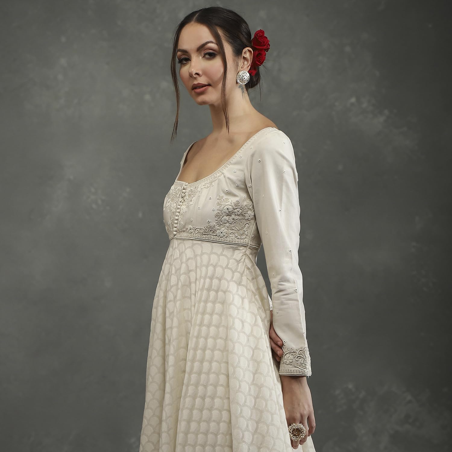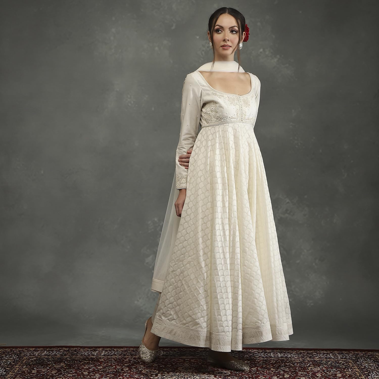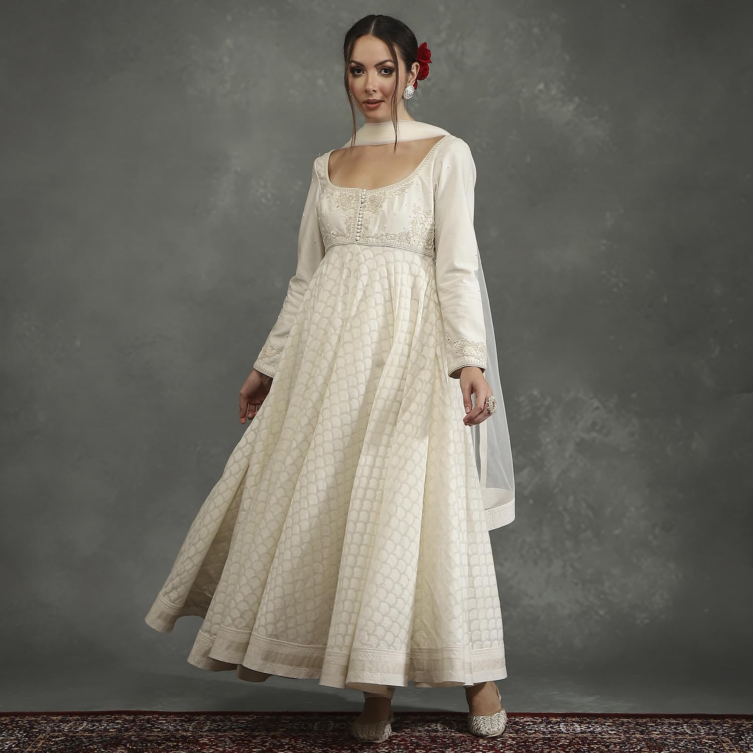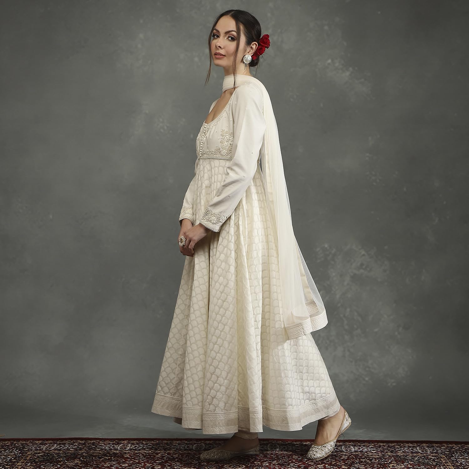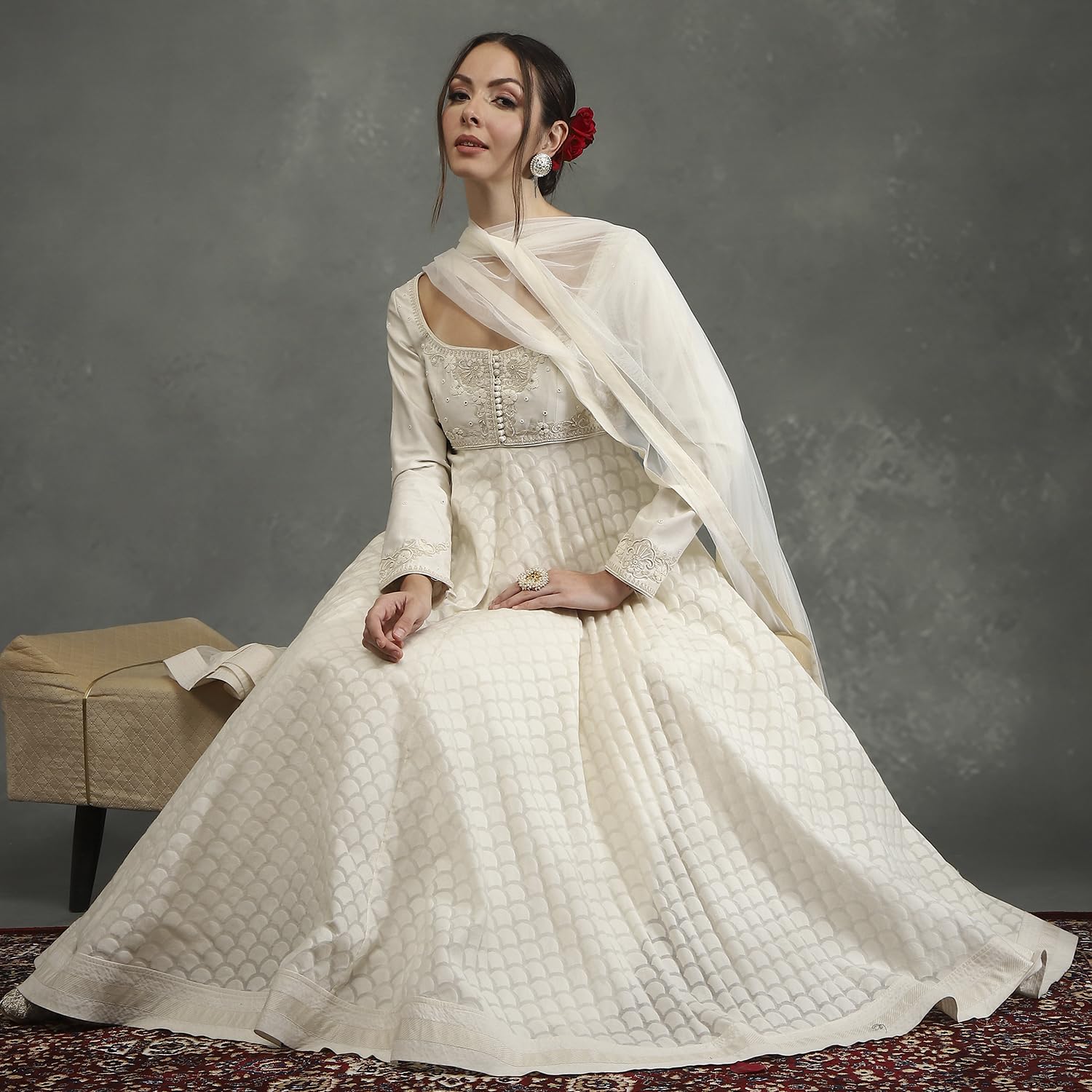 BIBA Women's Silk Chanderi Kurta Sets (CKD10745AW24CRM_Neutral