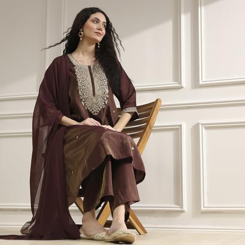 Biba Women's Viscose Kurta Set (SKDASRTFES30266AW25WNE_Wine