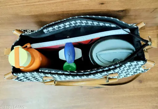 BIG ! YES THAT"S THE RIGHT WORD FOR OUR LATEST TOTE . BIG BAG TO KEEP ALL YOUR STUFF WITH EASE. CARRY YOUR LUNCH, WATER BOTTLE , FILES, LAPTOP & STUFF IN JUST ONE BAG. GOT ZIP TOP CLOSURE WITH BACK POCKET FOR ADDED CONVENIENCE. ADJUSTABLE STRAP FOR EXTRA SUPPORT WHEN YOU WANT KEEP YOUR HANDS FREE. ONE SMART BAG FOR ALL YOUR ESSENTIALS.