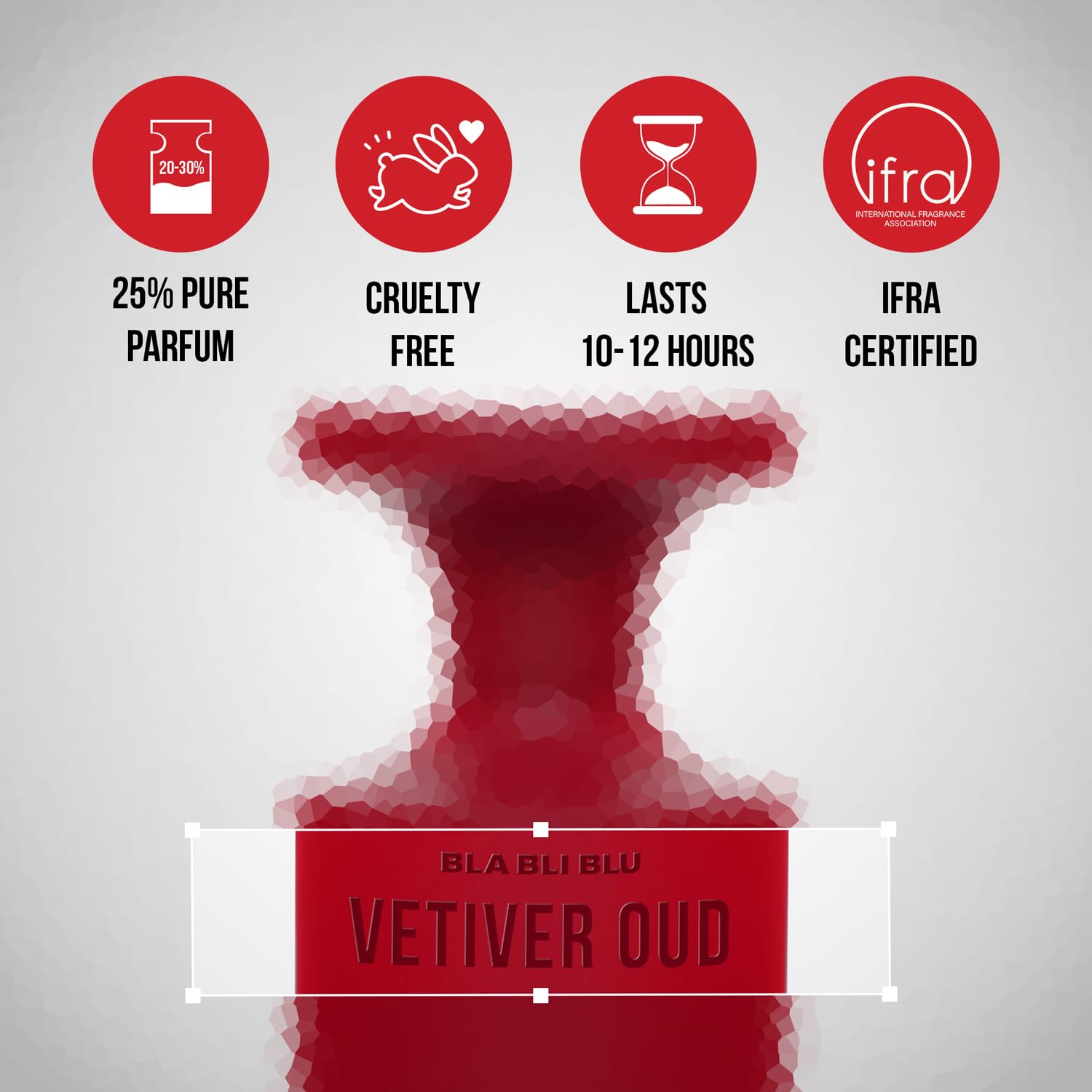 BLABLIBLU Vetiver Oud Unisex Perfume for Men & Women|100ml Long-Lasting Parfum Fragrances - A Notch above EDP, EDT & EDC|Perfume For Man & Woman|Oud, Rose & Jasmine Notes