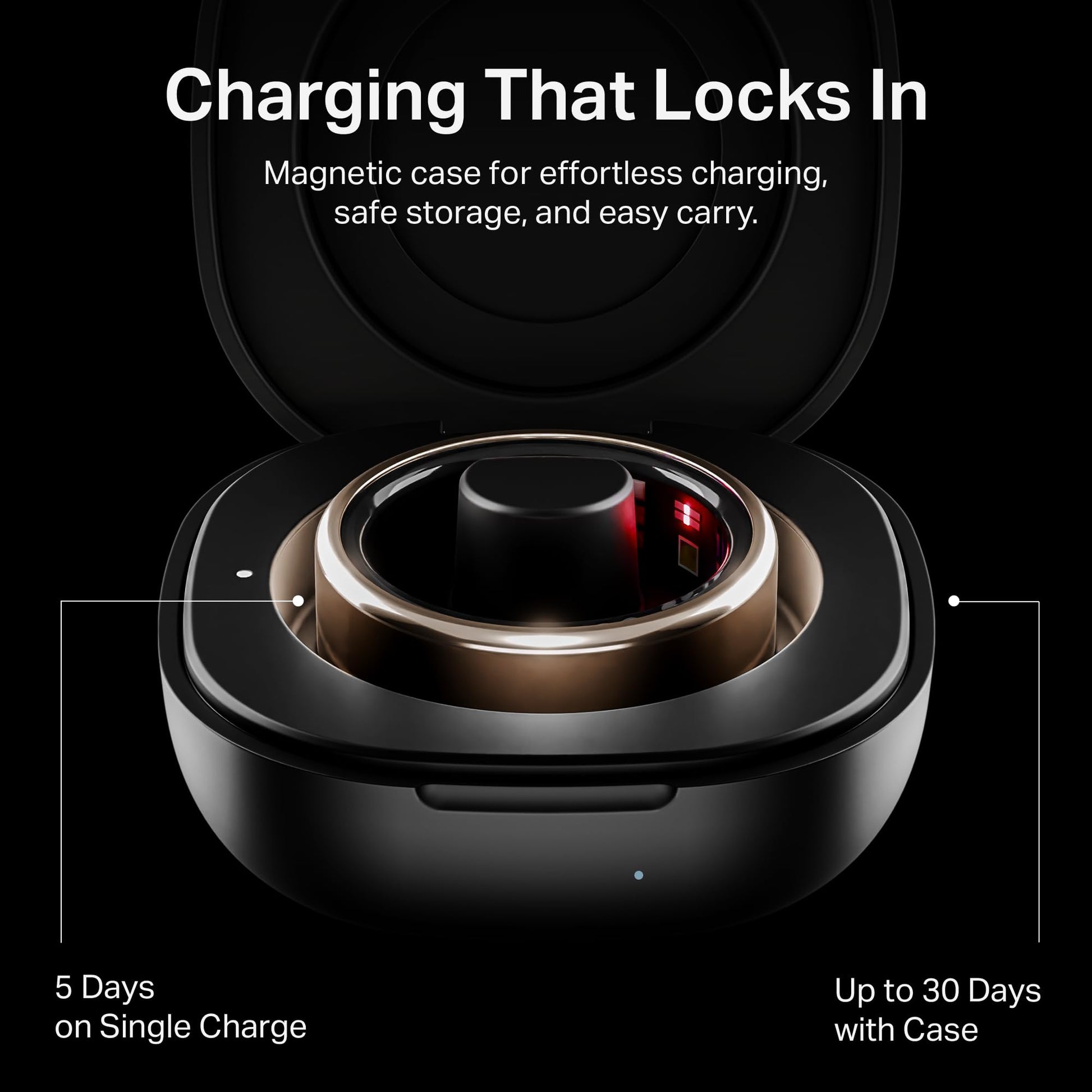 boAt New Launch SmartRing Active Plus, Auto Heart Rate, Sleep, SpO2, Stress & Skin Temperature Monitor, Stainless-Steel Build, Lightweight, 30-Days Battery, Magnetic Charging Case(8, Midnight Black)