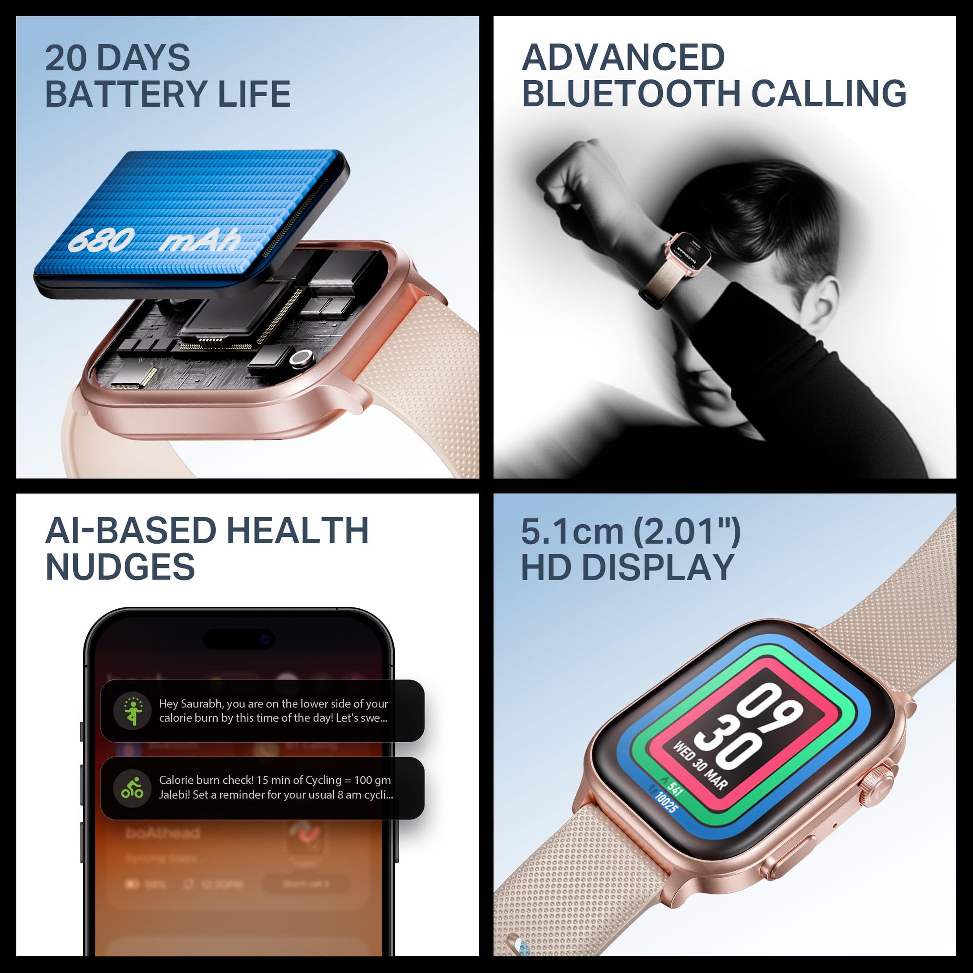 boAt New Launch Storm Infinity Max, 20 Days MAXIMUM Battery, Biggest Battery Capacity Ever! 2.01" (5.1cm)Display, Functional Crown, AI Nudges, BT Calling, Smart Watch for Men & Women (Cherry Blossom)