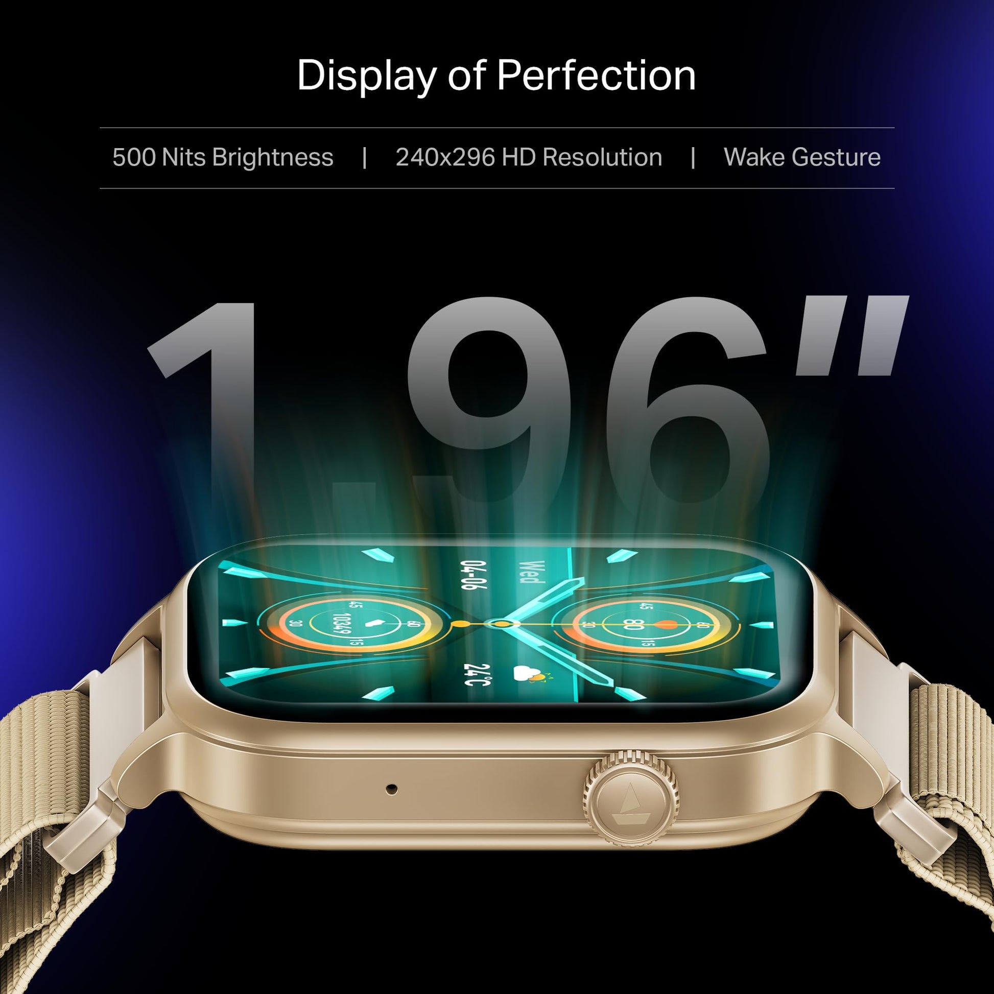 • 1.96” HD Display with Wake Gesture: The bright and responsive 4.97 cm (1.96”) display with 240x296 HD resolution and 500 nits brightness keeps the screen clearly visible even under bright sunlight. And with the intuitive Wake Gesture feature, all it takes is a raise of your wrist to instantly light up the screen. Check notifications, fitness stats, or the time—no taps needed.