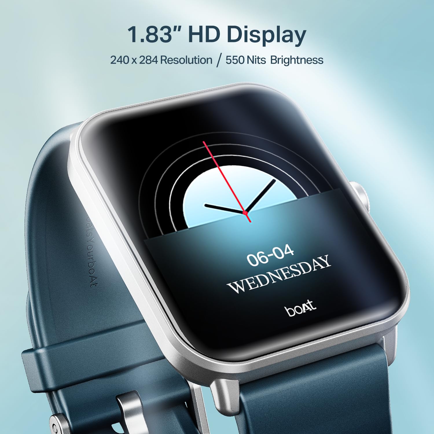 boAt Wave Call 2 with 1.83” HD Display, Advanced BT Calling, Functional Crown, Cloud & Custom Watch Faces, Multiple Sports Modes, IP67, HR, Sleep & SPO₂ Monitor Smart Watch(Cool Blue)