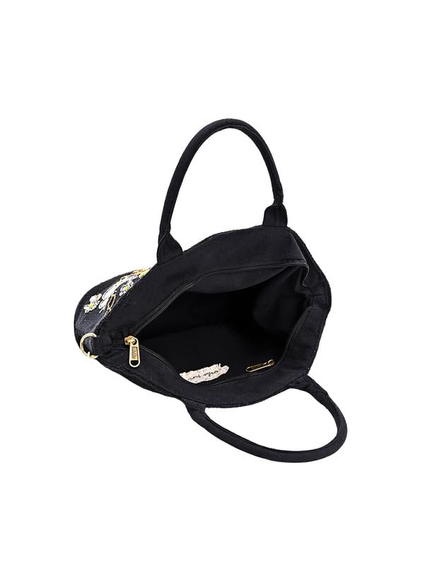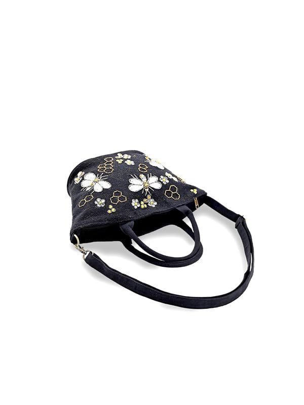 Boho Girl Embellished Butterfly Chirpy Charcoal Tote | Hand Embroidered Bag for Bridal, Casual, Wedding | Shoulder Bags for Women with Long Strap | Handbag for Women