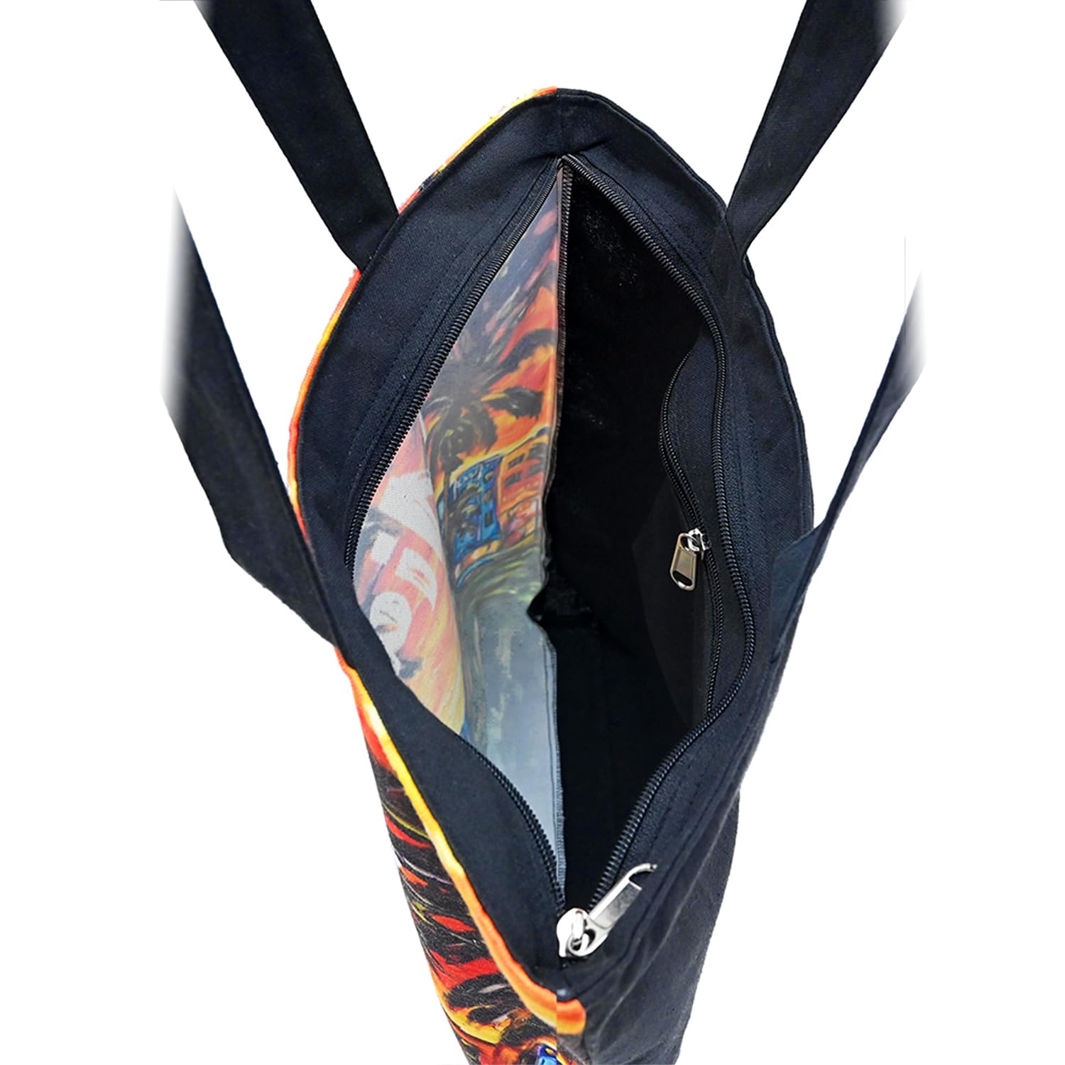 Boho Girl printed Large Cotton blend Tote Bag for Women Zipper Handbags for Women with Inner Zipper Pocket for Shopping Office & travel beach tote bag