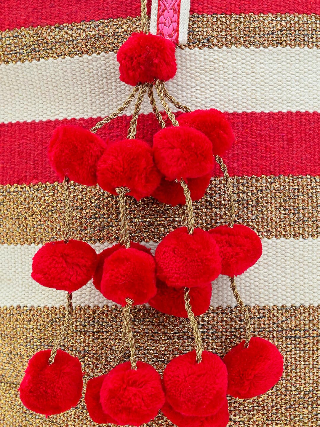 Boho Girl Red & Golden Gilter Handbag for Women with Zip Closure | College Bag for Girls | Handbag for Shopping, Travel & Vacations Tote | Detailng With The Tassel