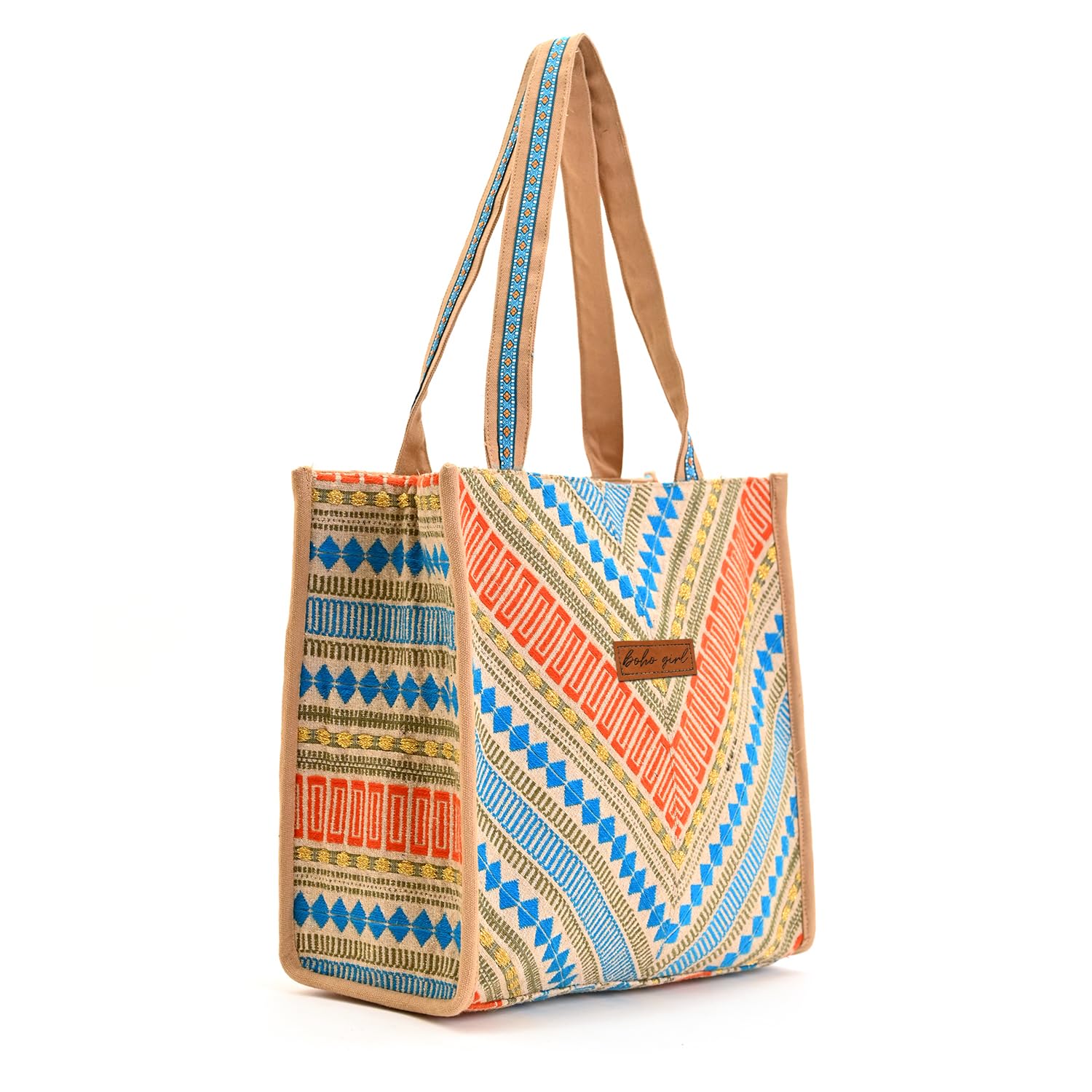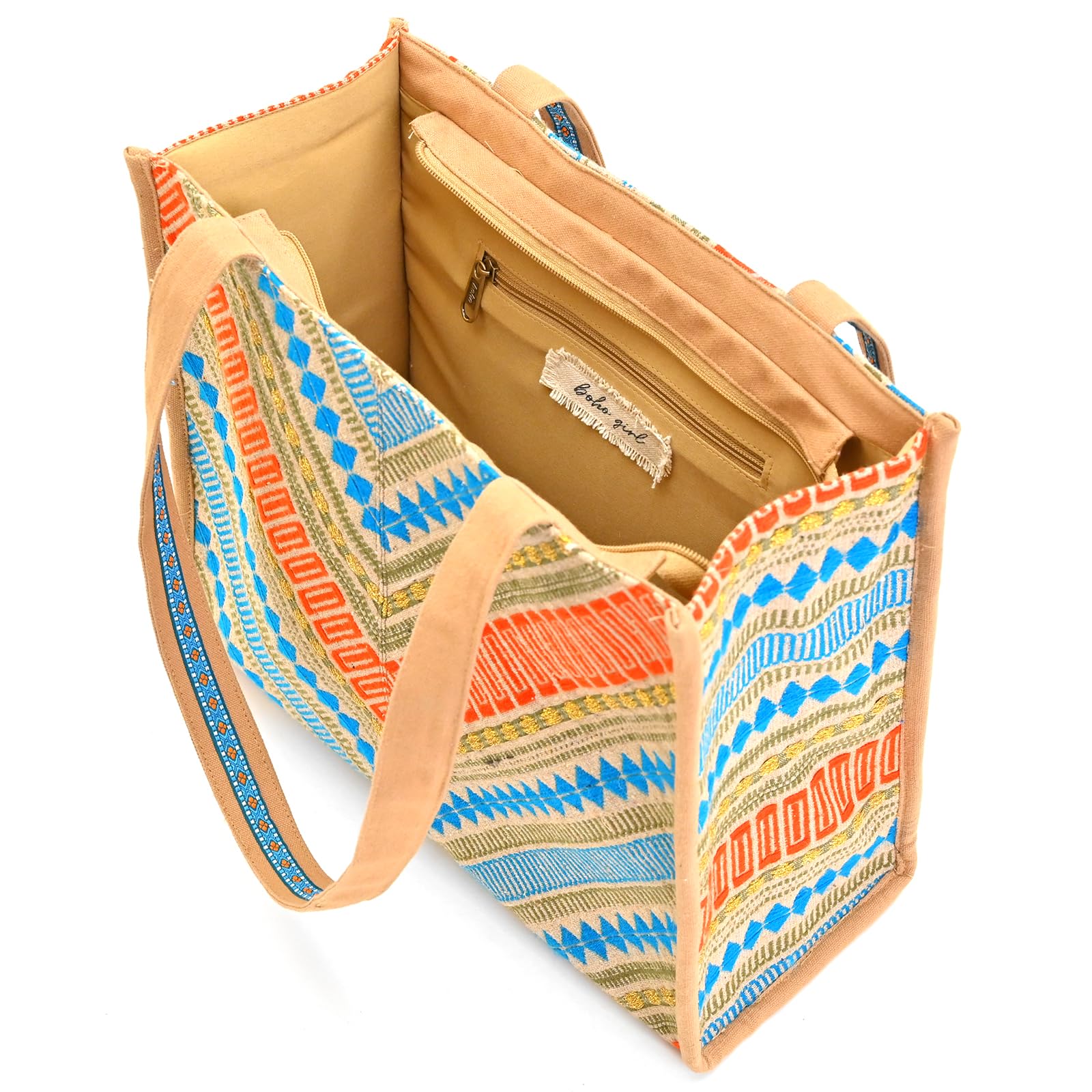 Boho Girl Summer Chic Vibrant Tote | Cotton Canvas Tote Bag for Women | Shoulder Bag with Top Zip Closure | Canvas Handbag for Grocery, Shopping, Travel, Work, Beach/Lunch Bag
