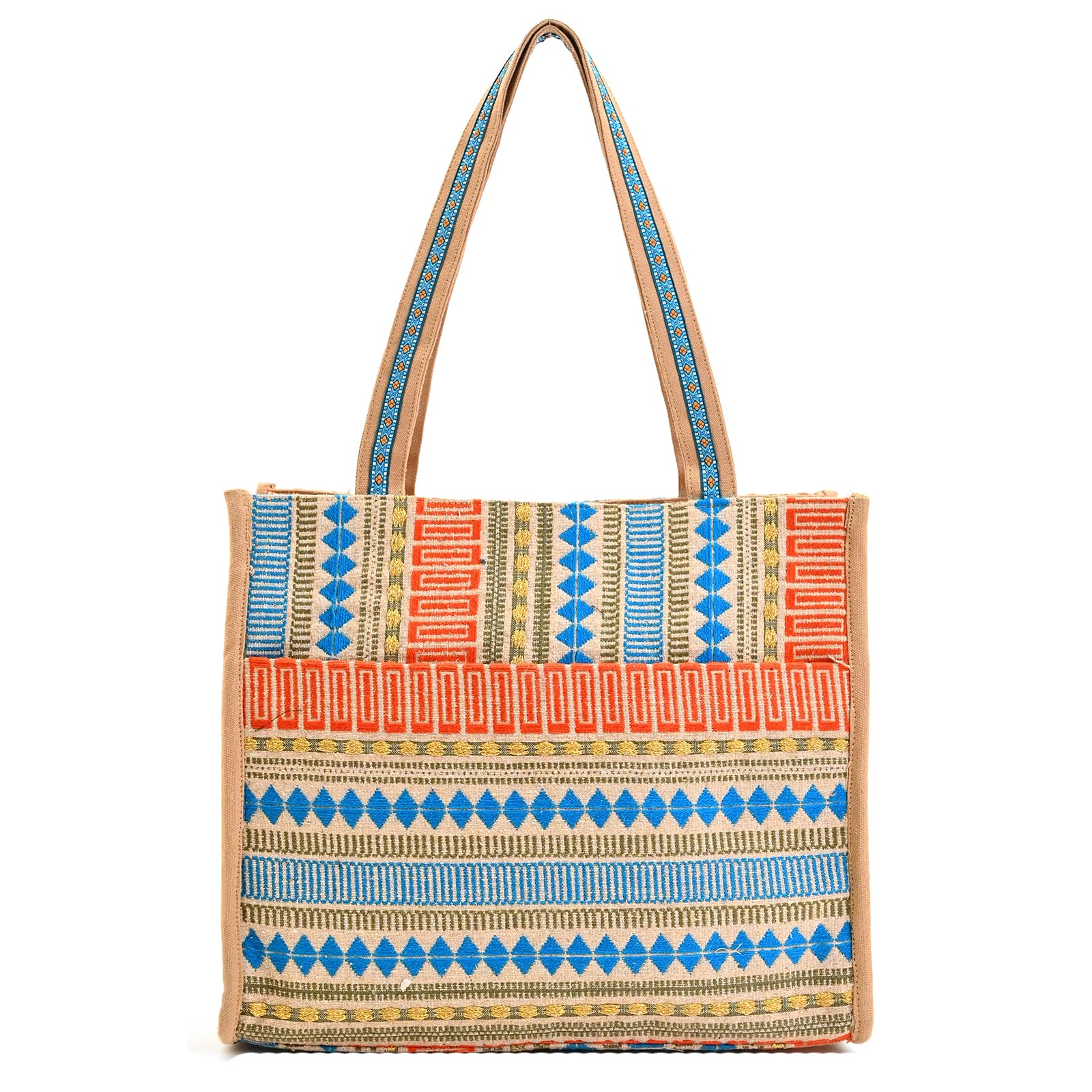 - ✅ Rectangle Geometric Printed Tote Bag. Crafted in Colorful Jacquard