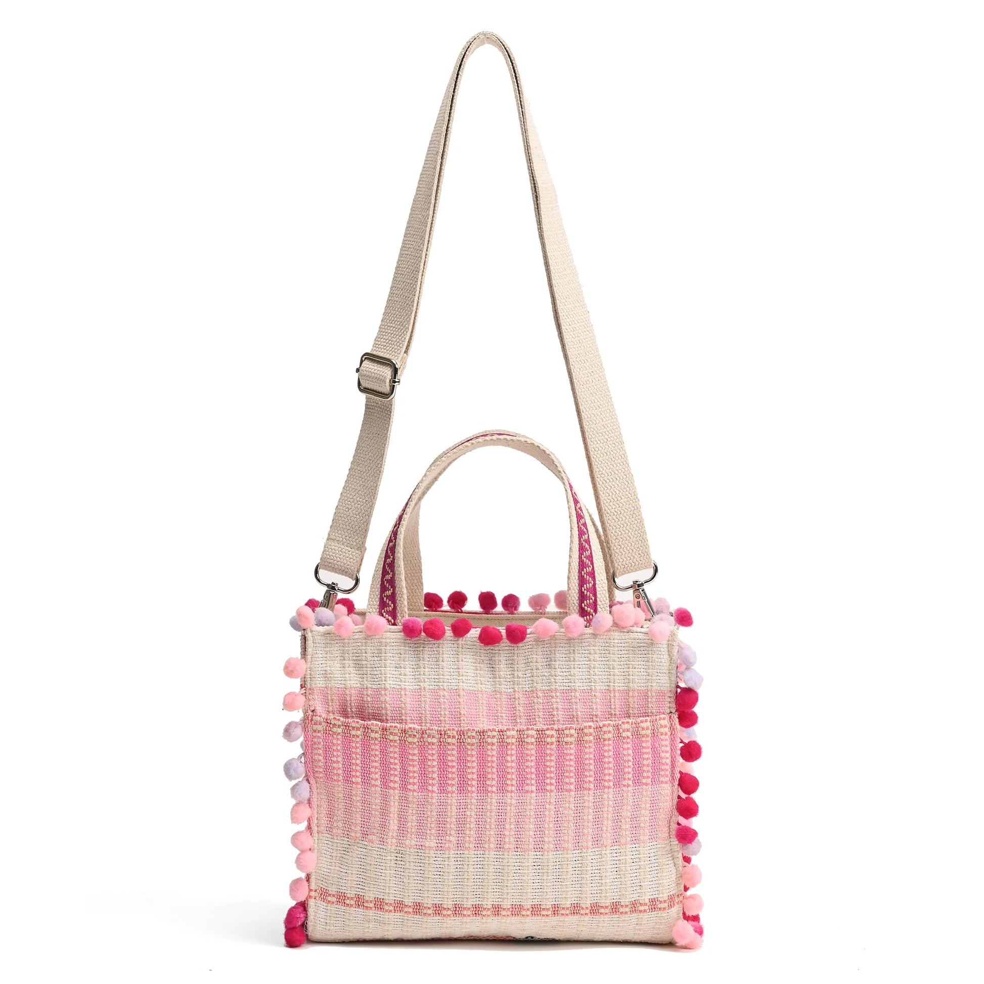 Boho Girl Whimsical Multicolor Jacquard Mini Blush Tote for Women with Adjustable Strap | Wedding Gifts For Women | Handbag For Women And Girls (Pink)
